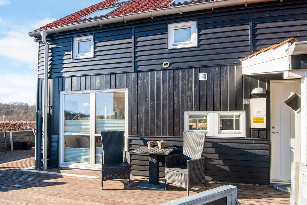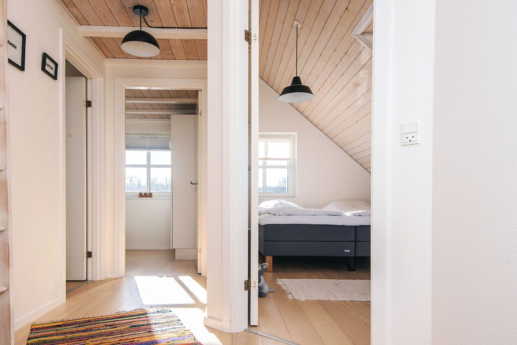 Well-kept and modern holiday apartment located with a beautiful view to both water, beach, forest and meadow at Juelsminde just approx. 100 meters from the building. The apartment is very bright and stylish and is the first in a row, and therefore has a large terrace, where you can find either shelter or sun all day. Here, both children and dogs can safely enjoy themselves, as it is closed all the way around. On the ground floor you will find a well-equipped kitchen, which is an extension of a bright and cozy living room and spacious dining area. On the ground floor you will also find both toilet and shower. TV via Chromecast streaming. On the 1st floor are three bedrooms and a loft, which invites an older child or teenager to have their own place. Here you will also find a spacious bathroom with whirlpool, which invites to wellness and cosiness. From the holiday apartment you have a view of an exciting nature playground, where both adults and children can have many hours to go with fun and games. From here also starts a mountain bike route with trails into the forest and around the countryside. Not for rent to youth groups.