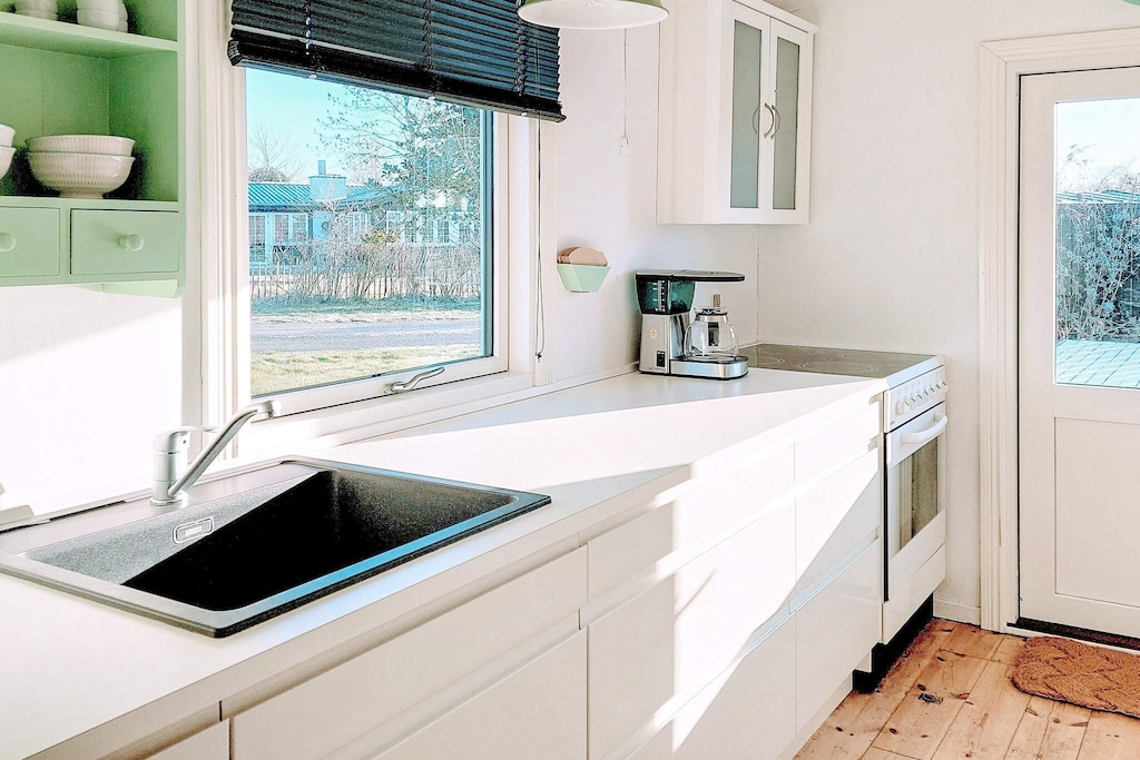 On Enø by Karrebæksminde you will find this holiday home. The house is furnished with two living rooms, kitchen with access to large wooden terrace, three bedrooms and bright bathroom with large shower. From one living room you have a nice view to the garden. From the house there is a short distance to the bathing beach, which has blue flags and lifeguards all summer. Karrebæksminde has good shopping opportunities and a canal environment that offers good restaurants, fishmongers, bakeries with cafés and numerous events during the summer, including live music. Not for rent to youth groups.