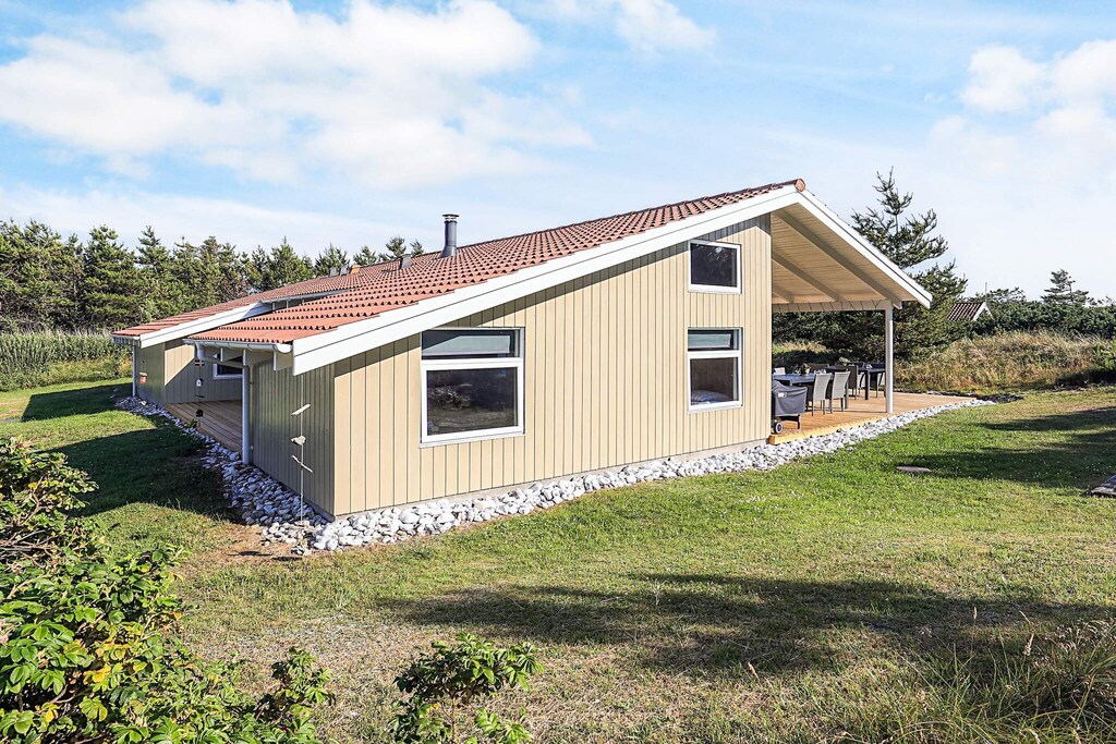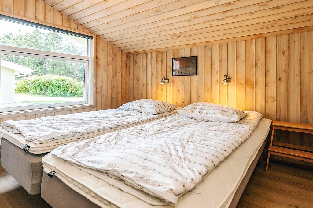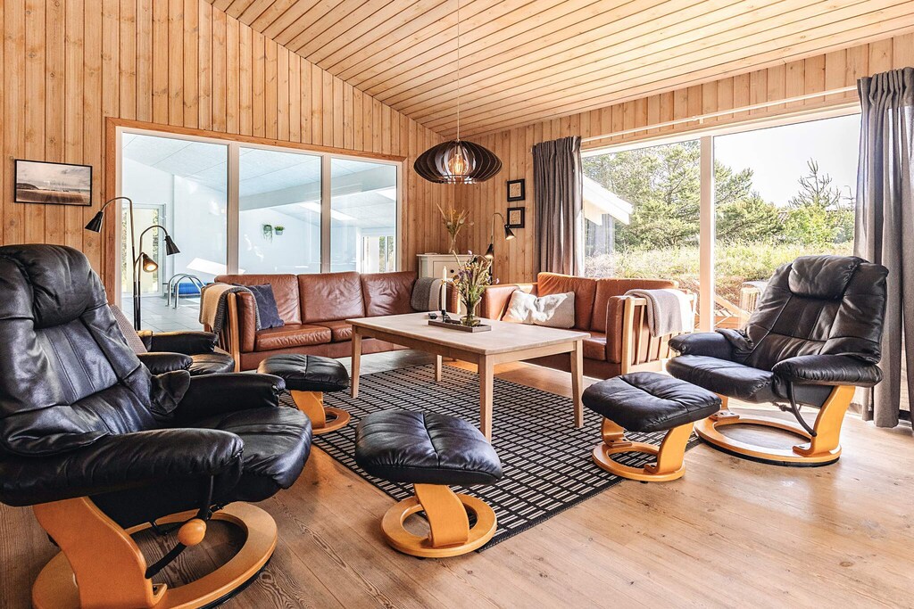 This holiday home is located in the coveted holiday home area by Klitmøller. The house also has a pool area with swimming pool of 6 x 3 m and with a depth of 1.5 m as well as a 2-person whirlpool and sauna. There is underfloor heating throughout the pool area. The living room has a wood burning stove. Of course, the house is also equipped with both TV with satellite dish, radio and stereo. From the living area, the family's activities in the pool area can be followed through a glass wall. For the children there is a sandpit and swing in the garden. Klitmøller is an old fishing village with a nice beach that invites to activities. In general, the area around the Limfjord offers some of the most beautiful of Danish nature. Some areas are protected nature reserves. The windsurfer finds here some of Europe's best conditions. Regardless of wind direction and no matter how experienced you are, you can always find a beach with optimal conditions. Among the many other sporting opportunities are golf, tennis, squash, etc. Deep sea fishing trips are planned from Thyborøn and Hanstholm to the Yellow Reef, which is an eldorado for anglers. Not for rent to youth groups.