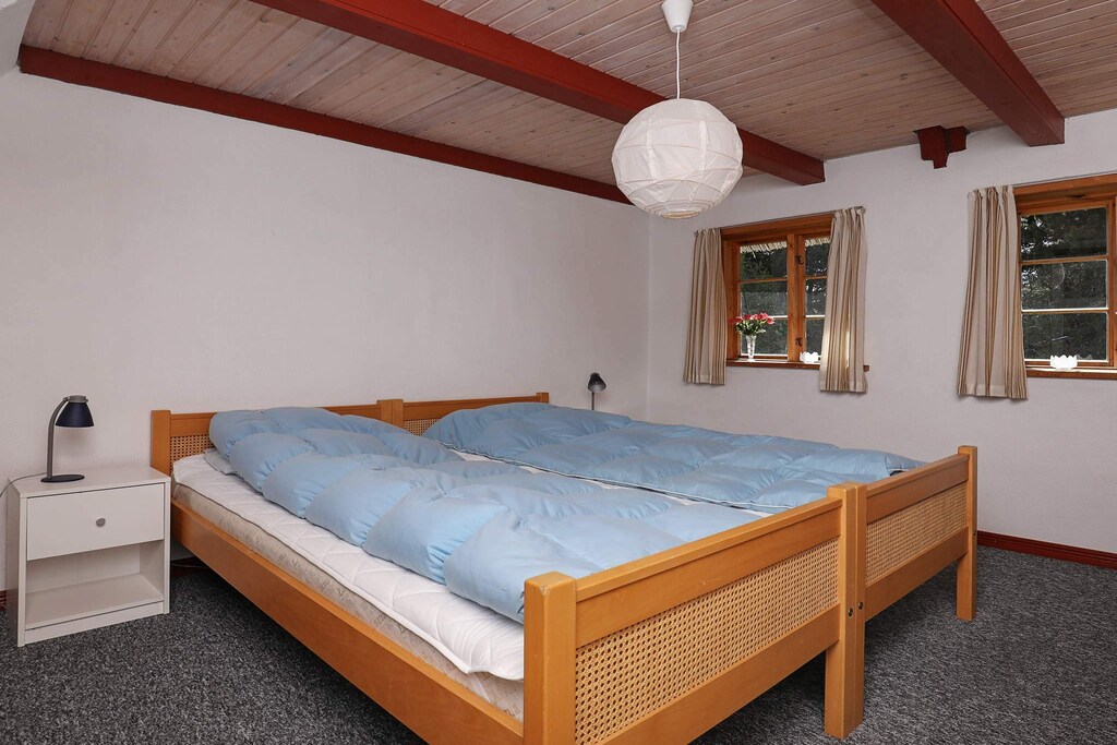 Charming Læsø farm located in scenic surroundings on a large grassy area with trees and lovely, enclosed courtyard, close to forest and the harbor environment. The house is furnished with five bedrooms, two bathrooms, separate kitchen and living room with wood burning stove and dining area. 1DO is not in the living room but in an aisle.