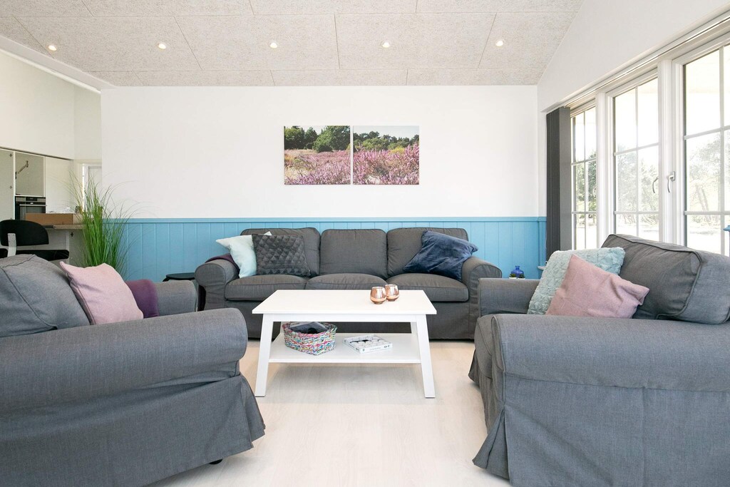 Completely unique location with panoramic views of the beautiful, protected nature area & quot; Bovet Bugt & quot; with several kilometers of shallow and child-friendly water. The cottage was completed in 2020 and has a beautiful, natural and Nordic decor with a sloping ceiling and a lovely view of Bovet Bay. The house has three large bedrooms with closet space and loft for two people. There are two bathrooms with shower and underfloor heating. Utility room with washer and dryer. There is an energy-saving air / water heat pump. From the house it is not far to cozy Østerby harbor with marina, restaurants, fish shop and good shopping. Not for rent to youth groups.