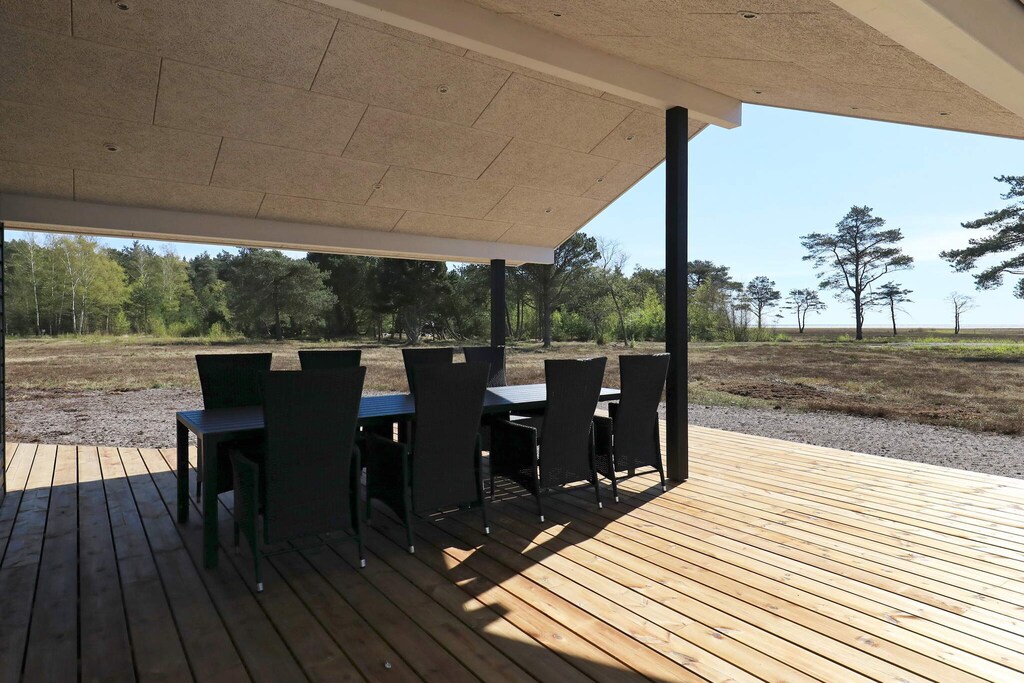 Pænt , nyt sommerhus i dejlig natur med udsigt til havet, God indretning og fine terrasser,