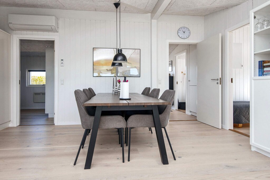 Well located cottage only approx. 200 meters from the Limfjord with child-friendly beach and large playground / ball field with plenty of space to frolic on a hot summer day. The house's activities provide ample opportunity for many hours of entertainment for both children and adults. There is table football, darts, PlayStation 3 with accompanying games and outdoor football goals. For the little ones there are swings, sandpit and play tower. The cottage is practically furnished with a combined living room / kitchen. The living room has a flat screen TV with both German and Danish, DVD player, radio and free internet. There is a wood burning stove for a cool summer evening or an autumn evening with rain and debris. The kitchen has i.a. ceramic hobs, oven with grill, dishwasher, fridge / freezer, extractor hood and microwave. There are three bedrooms. Bright bathroom with bathing area, shower and underfloor heating. There is a washing machine and a high chair for the little ones. The house has several continuous terraces, some of which are covered with garden furniture, gas grill and solar carts, where dinner can be enjoyed while the sun goes down over the area. Not for rent to youth groups.