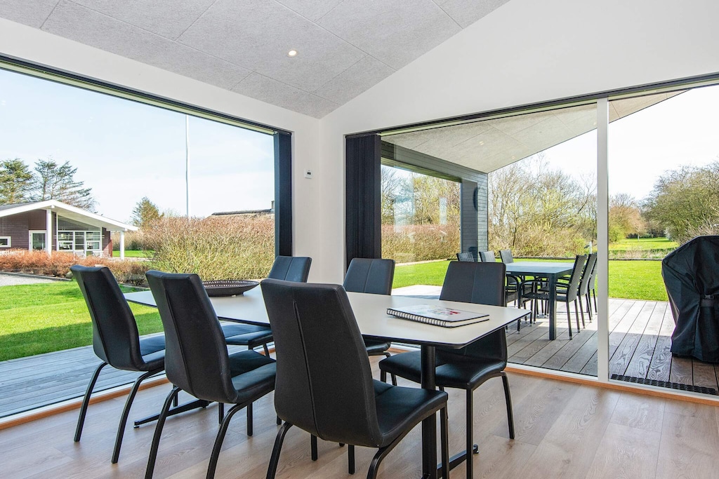 The summer house of the future built in 2022, 100% energy-friendly house with air/water heat pump), and thereby the possibility of very low consumption costs, located only approx. 350 meters from the Limfjord with a child-friendly beach, where, among other things, can be caught crabbing or fishing. The house also offers a 6-person wilderness bath in top quality as well as an outdoor shower with both cold and hot water. In addition, there is a charger for electric cars. Indoors there is a quality 2-person hot tub and sauna. There is underfloor heating throughout the cottage. The house is built with attention to detail and with the very best building materials, including Swan kitchen, bath and cupboards. The house appears bright and inviting with a pitched ceiling and is practically furnished with a combined living room/kitchen/family room The living room offers, among other things, on modern furniture, free internet and flat-screen TV with both Danish and German channels, etc. The kitchen is well equipped with ceramic hob, separate oven with grill, extractor hood, dishwasher, fridge/freezer with 40 liter freezer and coffee machine. Bathroom with 2-person spa bath, walk-in shower, bathing environment and underfloor heating. There is both a washing machine and a tumble dryer in the house. The house has three bedrooms, all with quality beds, divided into 2 rooms with double beds and one room with two single beds. There are several terraces, both open and covered, with good garden furniture and a gas grill, where you can enjoy dinner while the sun sets over the area. A house, out of the ordinary, suitable for all seasons to be experienced. Not for rent to youth groups.A refundable deposit might be charged closer to your check-in date. The security deposit ensures a smooth stay and covers any additional services or consumption charges.This deposit covers utilities consumed during your stay and any additional services that may be taken.The final amount will be adjusted based on actual meter readings, actual usage of extra services, and any remaining balance will be refunded within 21 days after checkout.This deposit simply acts as a prepayment for charges that you would anyways pay for, ensuring a seamless stay and check-out experience.