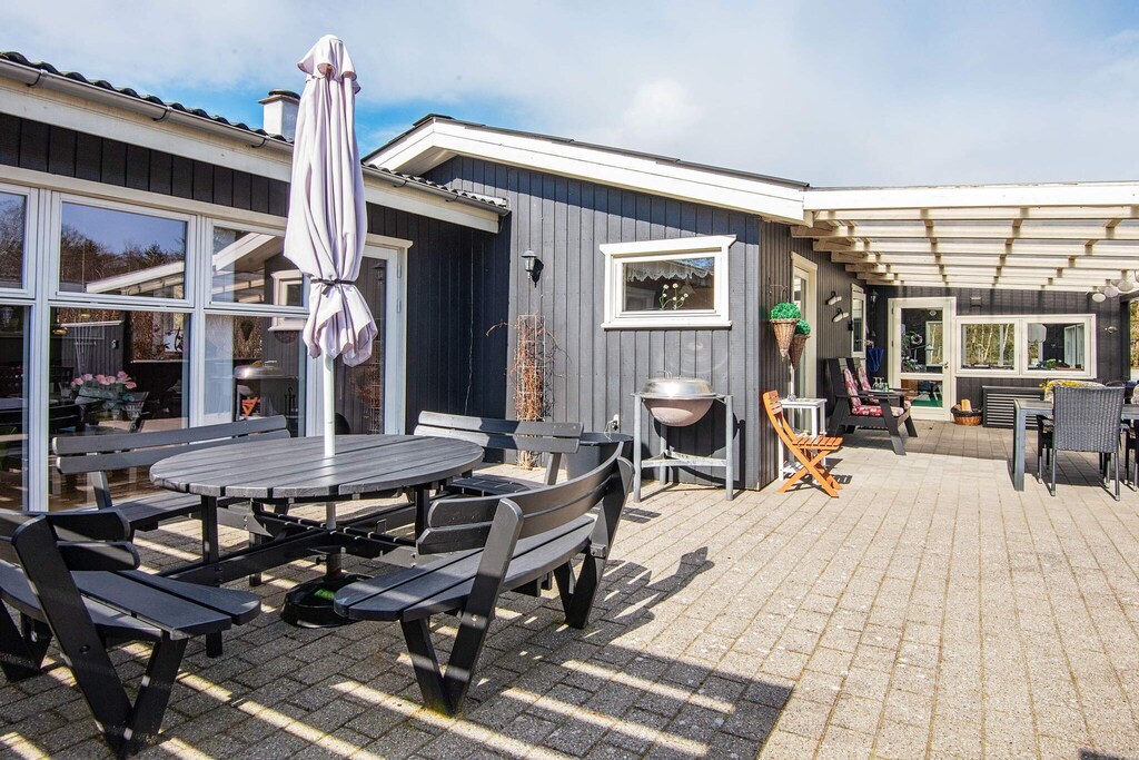 In Trend, you will find this renovated summer house, which is bright and cozy in just the right way. The house has an entrance hall, a well-equipped kitchen/family room with an open connection to the living room with high ceilings and a wood-burning stove, as well as three bedrooms. In addition, there is a large bathroom with a shower and washing machine. Spacious living room with wood-burning stove and internet. There are large, lovely terrace areas, both open and covered, designed so that you can enjoy the sun to the fullest and find both shelter and shade. A lovely garden room means that summer is especially long when you stay in this house. Large grounds designed for family vacations with time for togetherness, including a campfire area in one corner where both children and adults can enjoy some quality time. Youth groups are not permitted.A refundable deposit might be charged closer to your check-in date. The security deposit ensures a smooth stay and covers any additional services or consumption charges.This deposit covers utilities consumed during your stay and any additional services that may be taken.The final amount will be adjusted based on actual meter readings, actual usage of extra services, and any remaining balance will be refunded within 21 days after checkout.This deposit simply acts as a prepayment for charges that you would anyways pay for, ensuring a seamless stay and check-out experience.