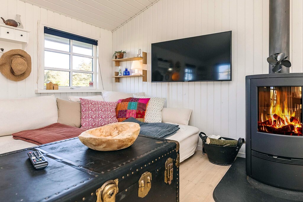 Well-furnished holiday cottage with whirlpool and sauna. From the elevated terrace facing west you have a small view of the ocean and great views of the dune area; a perfect location for enjoying the sunset. Open concept kitchen and living room, 3 bedrooms and an annex with double bed. The bathroom has whirlpool and underfloor heating and the other bathroom has access to the sauna. Both indoor and outside the house is very well-kept with modern furnishings in traditional Danish cottage style. There is a heat pump and wood-burning stove for low-cost heating. One of the many terraces is almost a patio as it is enclosed by house and annex. The house is located on a very hilly dune plot approx. 700 m from the ocean and beach in scenic surroundings south of Løkken. No letting to youth groups. A refundable deposit might be charged closer to your check-in date. The security deposit ensures a smooth stay and covers any additional services or consumption charges.This deposit covers utilities consumed during your stay and any additional services that may be taken.The final amount will be adjusted based on actual meter readings, actual usage of extra services, and any remaining balance will be refunded within 21 days after checkout.This deposit simply acts as a prepayment for charges that you would anyways pay for, ensuring a seamless stay and check-out experience.