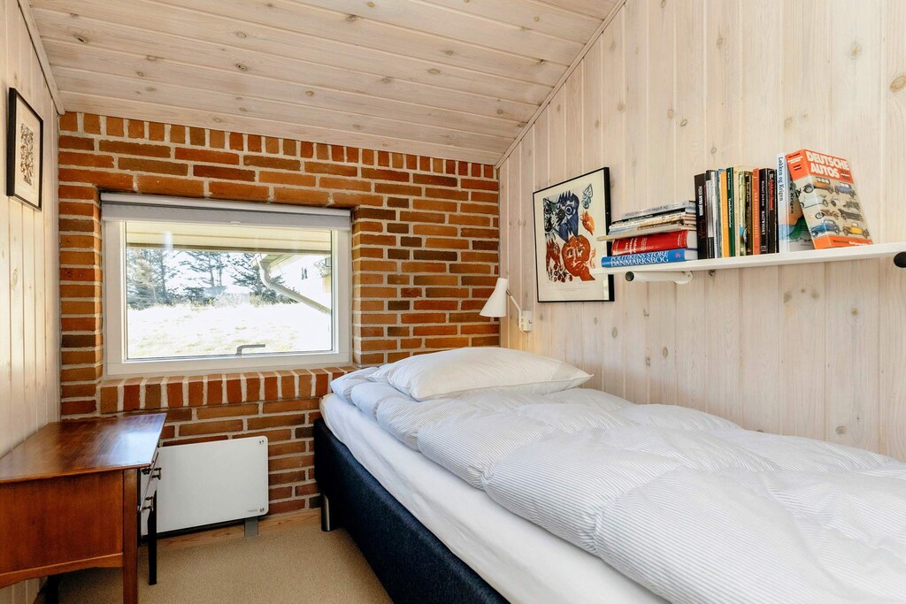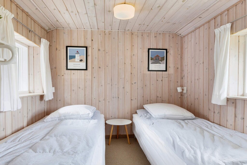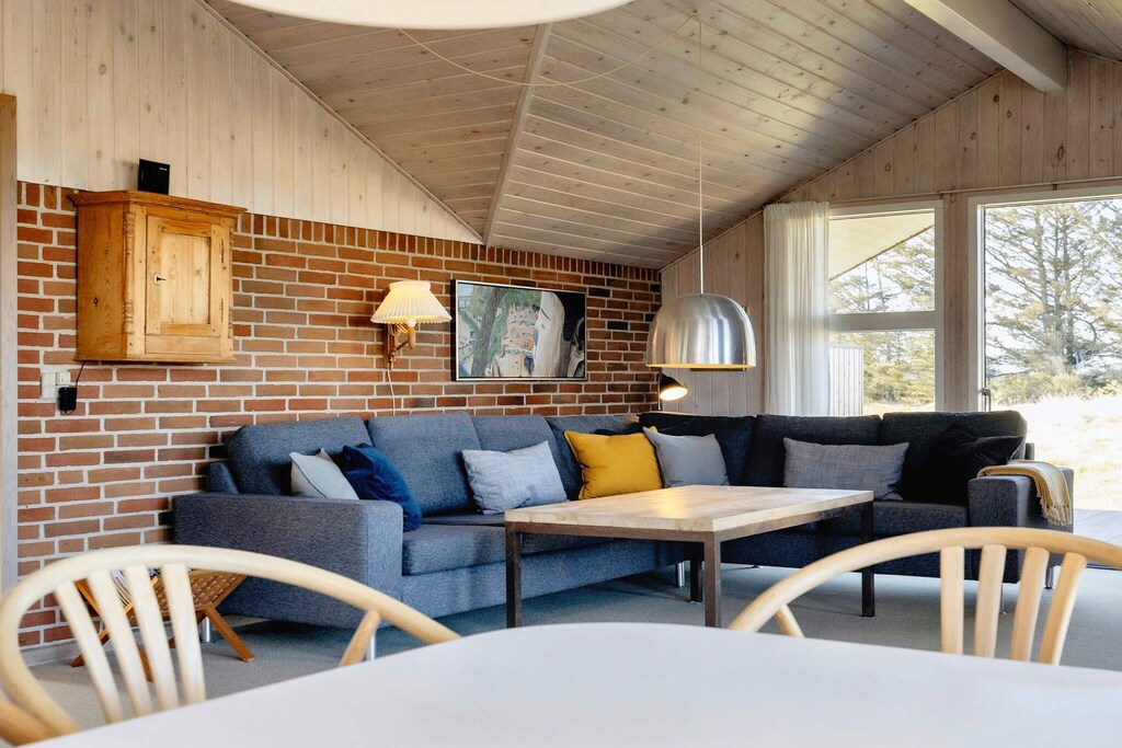 Large and spacious holiday cottage located in the southern part of Løkken approx. 3000 m from the town. No letting to youth and builder groups. The house has been modernised and maintained and features an open-plan kitchen and living room, four bedrooms (one in the annex), mezzanine, bathroom with underfloor-heating, guest toilet and open terrace facing south and a sheltered patio between the house and annex. The living room has an air-to-air heat pump that, along with the wood-burning stove, quickly and inexpensively heats the entire house. The decor is personal, Danish cottage style, tasteful and of good quality. There are, Nintendo Wii and PlayStation3. The south-facing patio between the house and the annex is the perfect place on warm summer days - sheltered from the wind and completely undisturbed surroundings in magnificent surroundings. The plot is slightly hilly dune plot, from where you can hear the ocean roar.A refundable deposit might be charged closer to your check-in date. The security deposit ensures a smooth stay and covers any additional services or consumption charges.This deposit covers utilities consumed during your stay and any additional services that may be taken.The final amount will be adjusted based on actual meter readings, actual usage of extra services, and any remaining balance will be refunded within 21 days after checkout.This deposit simply acts as a prepayment for charges that you would anyways pay for, ensuring a seamless stay and check-out experience.