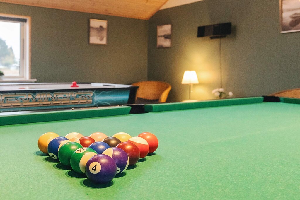 Huset opleves velholdt og meget pænt indrettet med fine designede møbler, Alt uden synlig slidtage, Godt aktivitetsrum med bl,a, billardbord i god og fin stand, Dyner, puder, madrasser og senge ligeledes i god stand, / Eneste minus er at smart TV s skærm opleves for lille, Dertil at tv et bør have en anden placering grundet solindfald/-reflekser,
