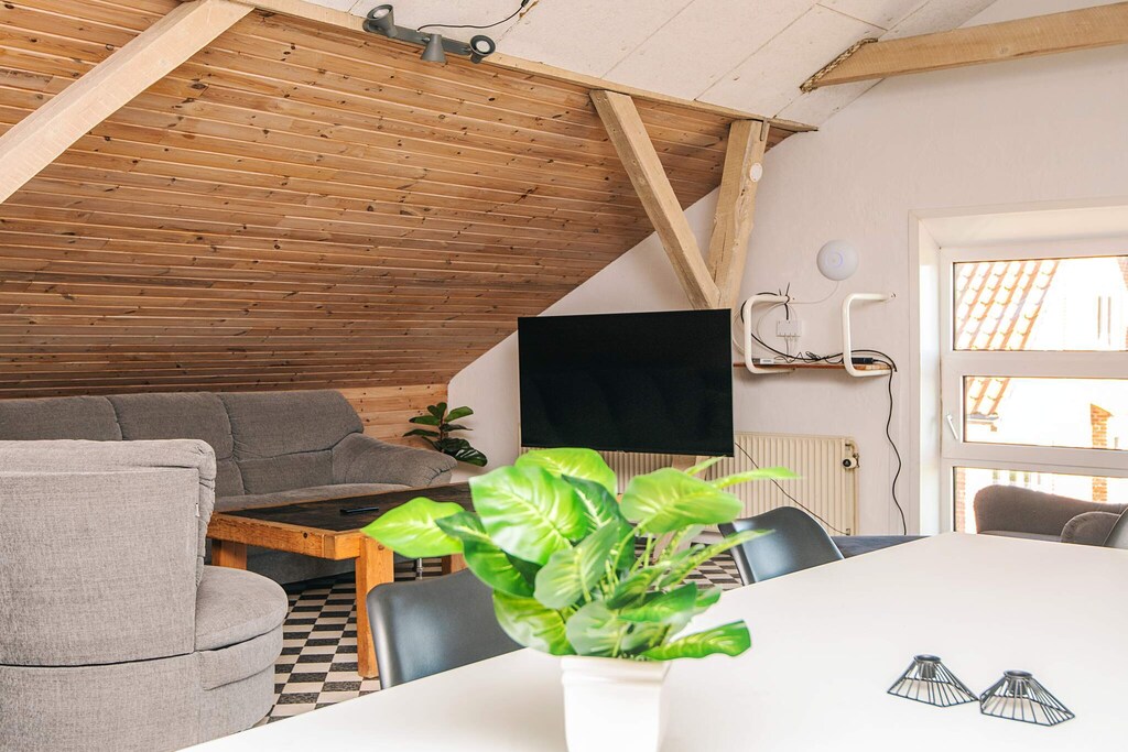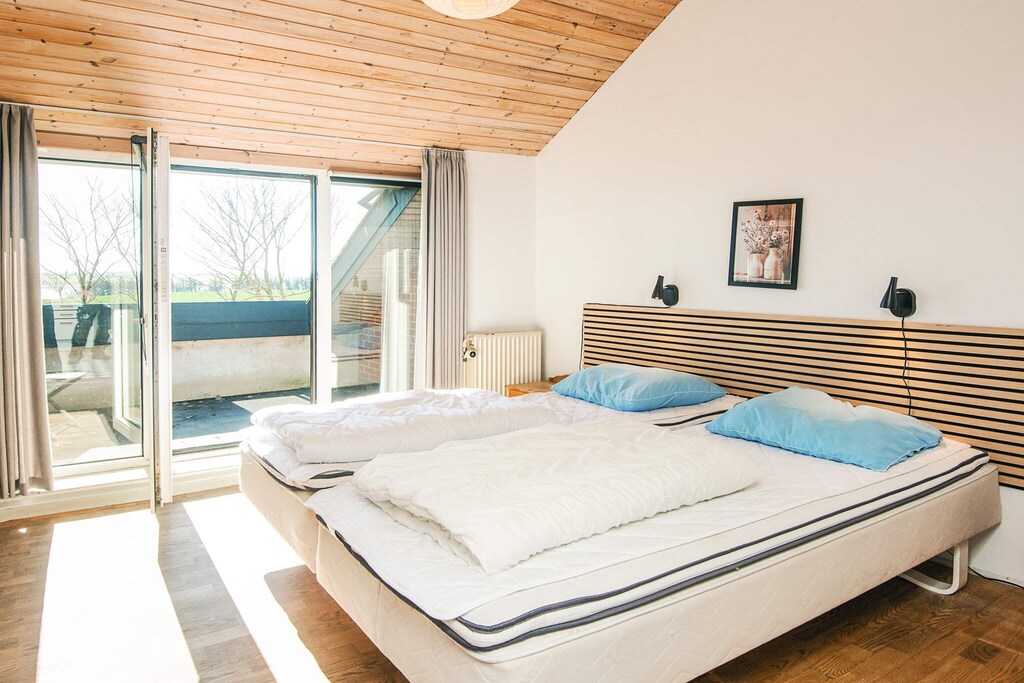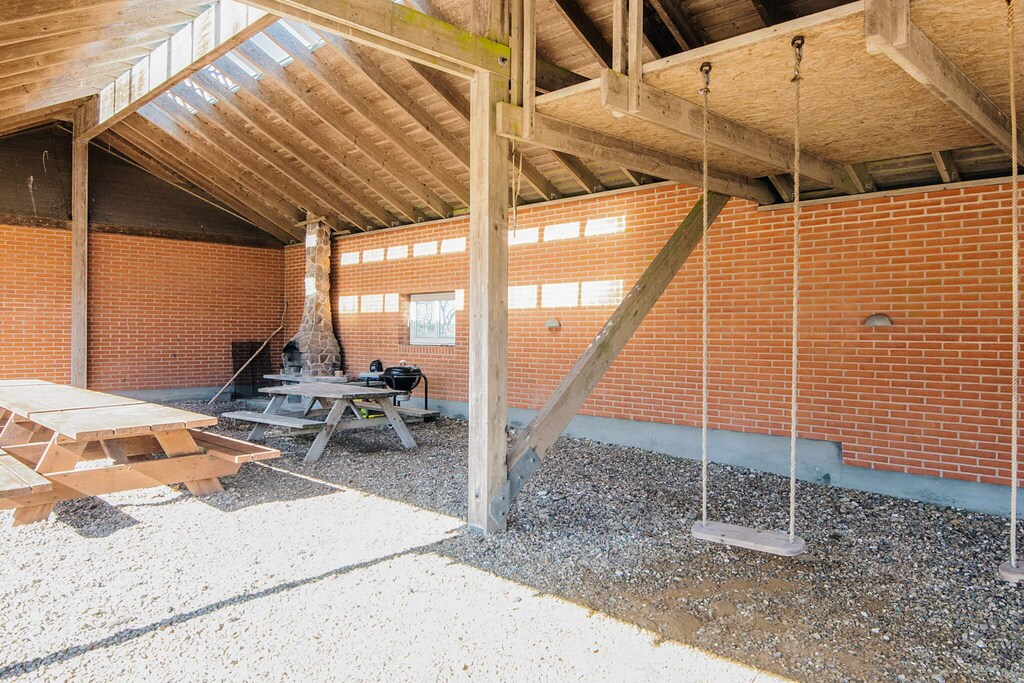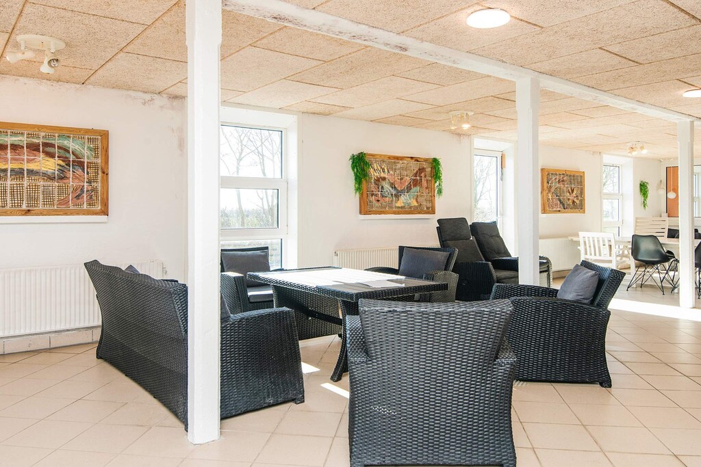 This 730 m² holiday home, partially renovated in 2023, with panoramic views of the Limfjord, both inside and out, is located just 300 metres from the water in Karby on Mors. The house also offers a huge 200 m² pool/activity area with a 32 m² swimming pool with counter-current system, water slide and children's pool. There is also lounge furniture and sun loungers. The 8-person sauna and bath/shower area are also located here. In the room next door (separated from the pool area by a glass wall) is a large activity room divided into two units with billiards, table tennis and darts, providing many hours of entertainment for the whole group. You will need to bring your own table tennis bats and balls. Separate multi-purpose hall with a badminton court with adjustable net for pickleball. There is also a separate squash court with international goals. Please bring your own rackets and balls. The holiday home is divided into two main buildings and a multi-purpose room in a separate building, so you can retreat in smaller groups. The farmhouse has an entrance hall, a living room, a dining room, a main kitchen, a bathroom and a utility room. The living room is equipped with comfortable furniture, free internet, flat screen TV and Chromecast, which you can use to stream your own TV programmes. Large dining room with space for everyone and a view of the fjord. Kitchen with electric cooker, fridge, microwave, large freezer, coffee machine and dishwasher. Bathroom with bath, shower and toilet. Utility room with washing machine and tumble dryer. On the first floor there are two large bedrooms, each with a double bed and two single beds, a hallway and a bathroom with double whirlpool, shower, shower cubicle and toilet. The pool area, sauna, bath/shower area and activity centre are located in the second building. On the first floor there is a large living room, a landing, the second kitchen of the house with a small dining area and five fantastic bedrooms, all with good double beds and each with a balcony from which you can also enjoy the view of the fjord. There are also two bathrooms, both with a shower, bath and toilet. The living room is equipped with comfortable furniture, free internet, flat screen TV and Chromecast, which you can use to stream your own TV services. Kitchen with electric hob, fridge, microwave and coffee machine. The house also has a fantastic outdoor area with several open terraces with good garden furniture and deckchairs where you can enjoy your dinner with a view of the fjord. A charcoal barbecue is available. There is also a large covered area with table/bench set and good garden furniture as well as an outdoor fire pit where you can bake snow bread or roast marshmallows etc. There is also a large seating area under the roof, which can be reached via a ladder (at your own risk), which is particularly exciting for young people. Note: The basement of the farmhouse is currently not accessible (renovation work), so new exciting initiatives can be introduced as soon as possible. Not available for youth and craft groups.A refundable deposit might be charged closer to your check-in date. The security deposit ensures a smooth stay and covers any additional services or consumption charges.This deposit covers utilities consumed during your stay and any additional services that may be taken.The final amount will be adjusted based on actual meter readings, actual usage of extra services, and any remaining balance will be refunded within 21 days after checkout.This deposit simply acts as a prepayment for charges that you would anyways pay for, ensuring a seamless stay and check-out experience.