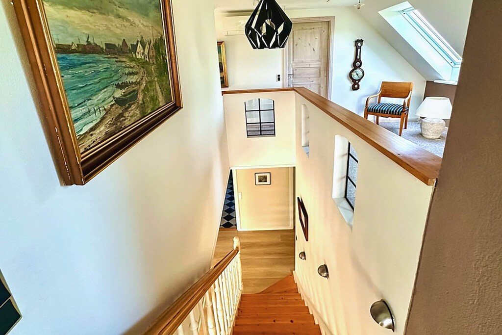 Large and charming cottage in 2 levels and high standard located in the idyllic fishing village Snogebæk. The house is stylishly and comfortably furnished and equipped with a wealth of modern conveniences, which form a perfect setting for a wonderful holiday. Here you live close to the city's vibrant life with shopping, restaurants, cafes and cozy shops and the beautiful sandy beaches at Snogebæk and Balka. The cottage is secluded at the end of a cul-de-sac with a large garden and terraces around the house, so you can just move after the sun. At the end of the cul-de-sac you will find the path that leads down to the sandy beach and Snogebæk's iconic island harbor and smokehouse. Not for rent to youth groups.