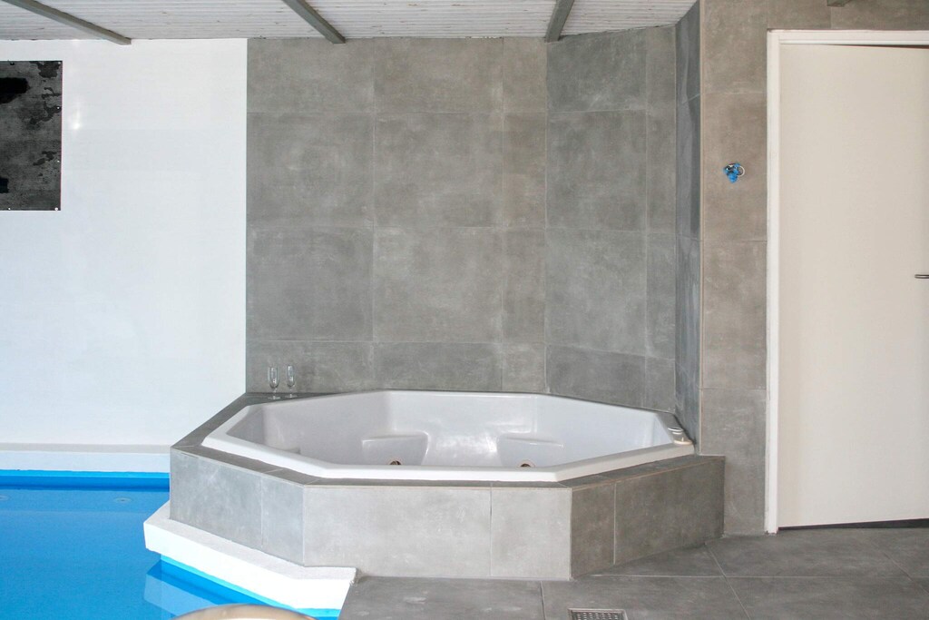Holiday home located in one of the popular holiday home areas on Als on a large plot in scenic surroundings approx. 250 m from the beach. The house is comfortably furnished and there is an indoor swimming pool of 6.5 x 3 meters, where both adults and children can frolic. There is also a sauna and whirlpool with room for 4 people. The large, open kitchen / living room provides for cozy gatherings at all times of the day. There is internet for work as well as streaming and also a fine selection of TV channels for the late evening hours. In the house there is also a multi-activity table with table football, air hockey and billiards, which you can have fun with. The interior of the house ensures plenty of space for two families who want to holiday together, as there are two bathrooms, five bedrooms and a loft. On the terrace you can enjoy the sun from morning to evening and enjoy the barbecue.