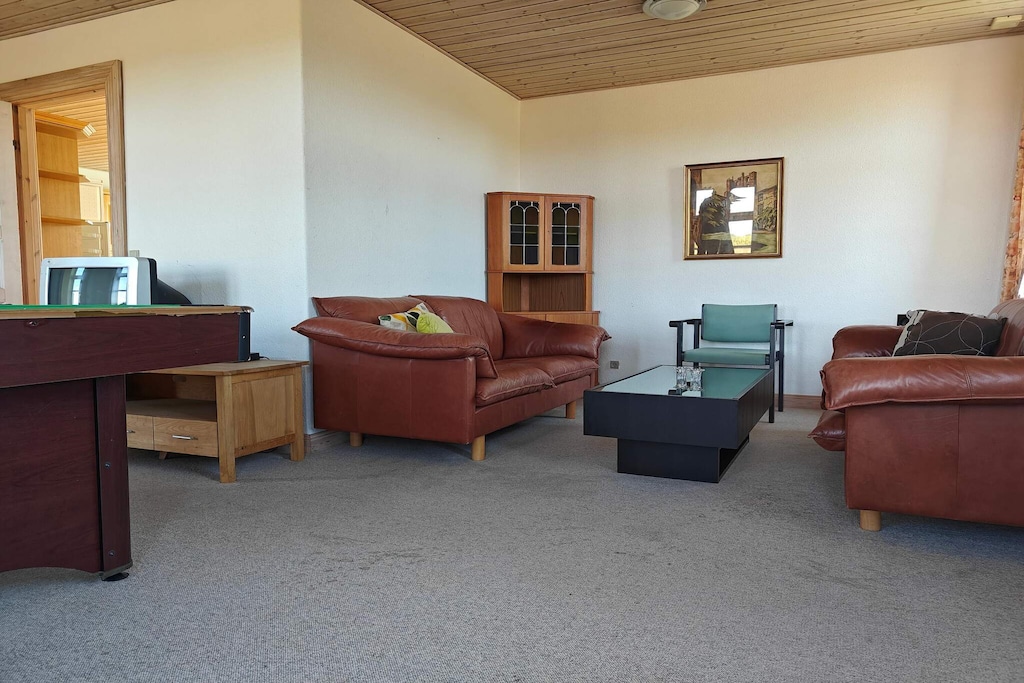 In this well-furnished holiday cottage offers both relaxation and activities for children and grown-ups.The house is divided into 2 buildings. In one building you can enjoy the swimming pool or relax in the whirlpool. There is a large living room, kitchen, dining area and bedrooms. The other building has another kitchen, bedrooms, bathroom and living room with billiards, darts and TV. There is a total of 7 bedrooms, 2 whirlpools and 3 bathrooms. The house is located in private, scenic surroundings with a secluded garden section with sandpit and swing for the children. Not far from the house you will find a popular golf course, fishing areas and the science park Danfoss Universe.