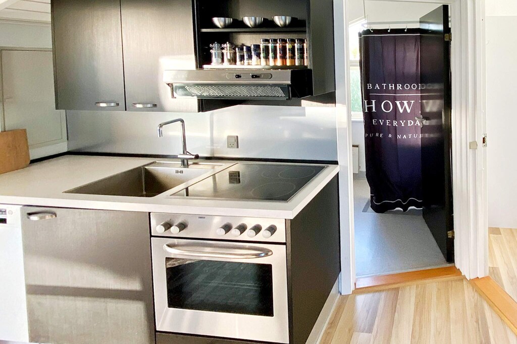 Modern and inviting vacation home only about 350 m from the lovely beach at Købingsmark. The vacation home is 64 m² and was built in 1992. In 2016, it underwent a partial renovation and is equipped with an energy-saving heat pump. The house is built with good materials and is energy efficient. The bright living room is open to the dining area and the bright kitchen. The style of the house is consistently light and friendly. The kitchen is equipped with a refrigerator, ceramic hob, convection oven, microwave, and dishwasher. In addition, there is an 80-liter freezer, washing machine, and wood-burning stove. There are a total of three bedrooms with two double beds and one single bed. Bathroom with shower. For entertainment, you will find a TV with Chromecast, Blu-ray player, DVD player, radio, CD player, and PlayStation 3. Wireless internet is available. The house has a cozy terrace where you can relax and enjoy the view of the grounds. There is a 10 m² open terrace and a 6 m² covered terrace. There is a tool shed and barbecue. The house is located on a 656 m² garden plot with a trampoline (use at your own risk/insurance). It is approx. 350 m to the sea. From the cottage, it is approx. 3 km to Nordborg town, where you will find a large shopping center and various restaurants. Not available for rental to youth groups.