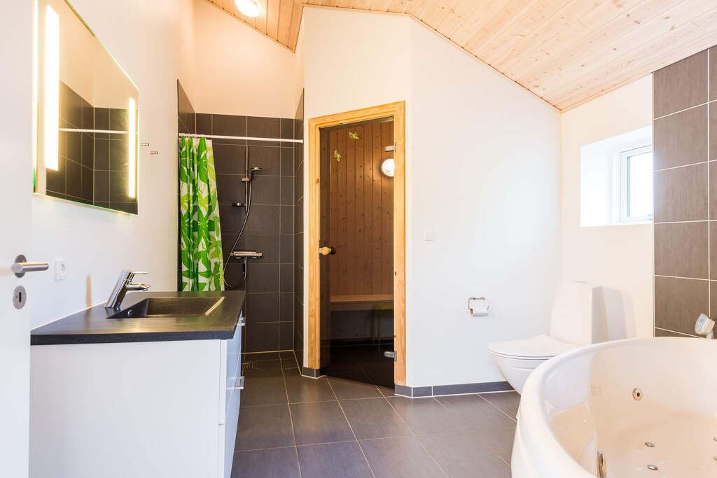 This lovely holiday home is located in the middle of beautiful, nature-filled Nymindegab, in peaceful surroundings surrounded by fir trees and rich wildlife. You will find pure idyll here. The holiday home has several nice terraces with sun and shelter. The bright living room and kitchen are open plan - from the living room there is a nice view of the lovely area. The wood-burning stove in the living room spreads warmth and cosiness. There is underfloor heating throughout the holiday home. All rooms are bright and spacious. The holiday home also has a lovely activity room with billiards, darts, table tennis and PlayStation 3 (games must be brought with you). In addition, there is also a spa and sauna in the large bathroom. So if the weather is not favourable, there are many opportunities for indoor entertainment. The holiday home is suitable for wheelchair users. Free final cleaning!