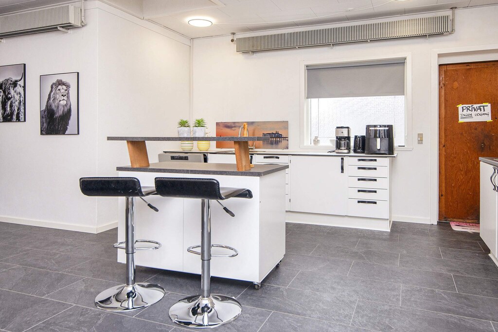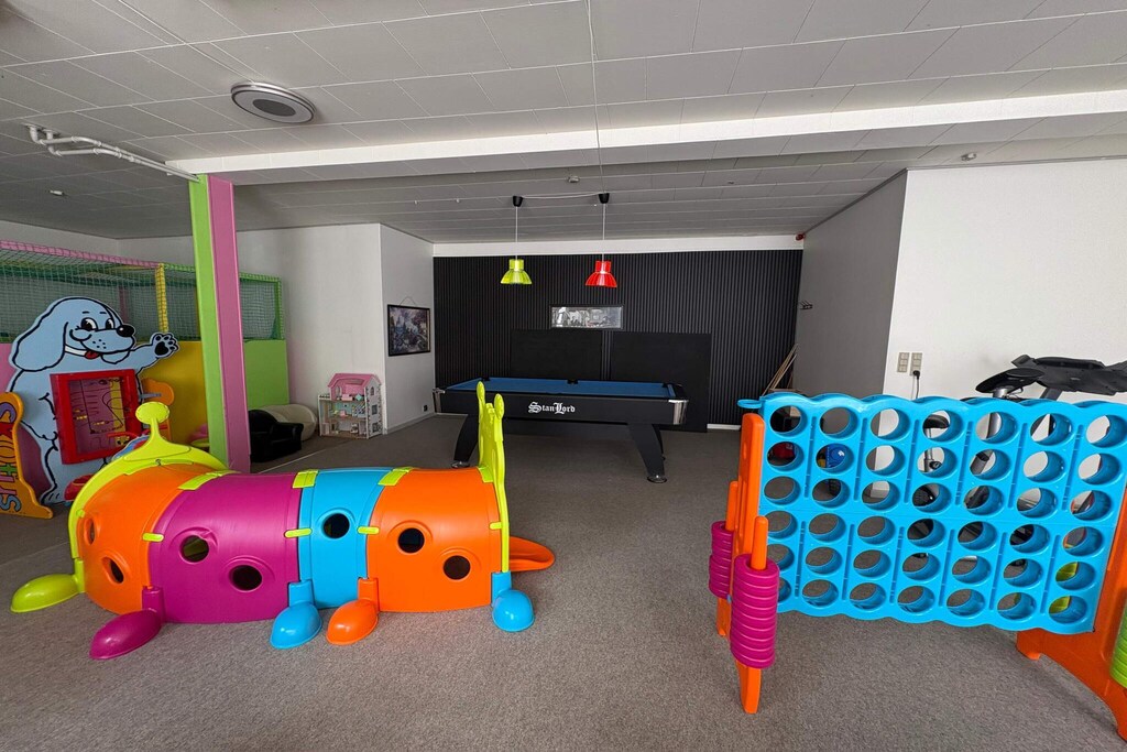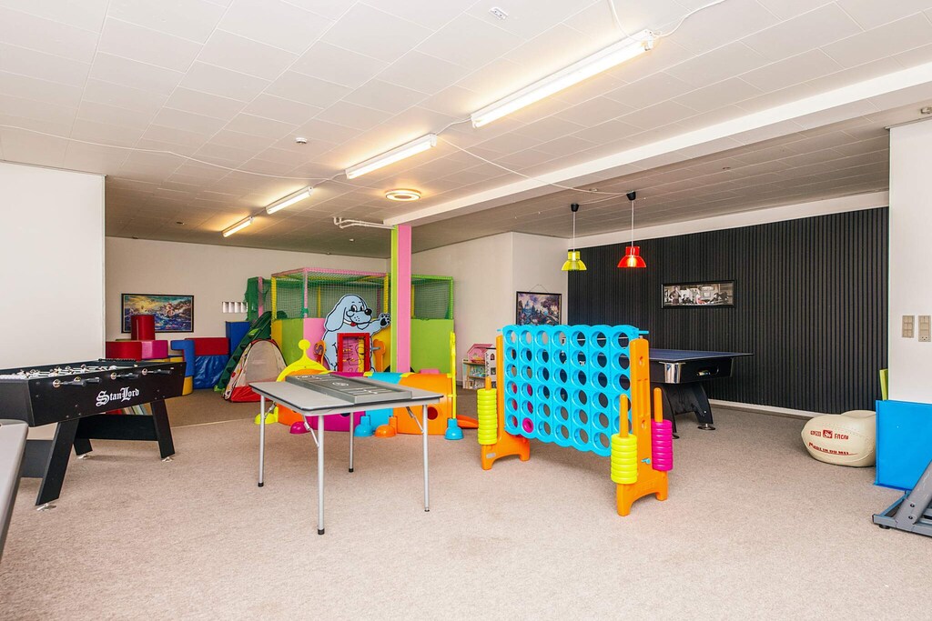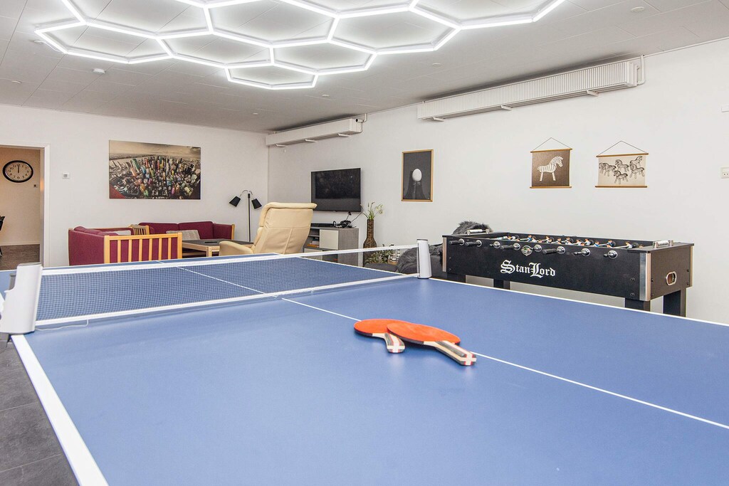 The House That Has Everything for a Large Family with Children! This house is over 400 m² and features 3 bathrooms, 6 bedrooms with double beds, and the option to accommodate 2 extra guests on mattresses (also includes a toddler bed and a high chair). There is a large shared living and dining area, as well as 2 kitchens, both equipped with dishwashers. The property also includes a huge activity room with a pool table, table tennis, air hockey, infrared sauna, foosball table, ball pool, and much more. Outside, you’ll find a large private garden of 3,500 m², offering various activities for both children and adults, as well as a garden room. Guests also have free access to the water park, bowling, tennis, and more associated with the house – you can read more at www.svoem-leg.dk . All TVs are smart TVs with streaming services.