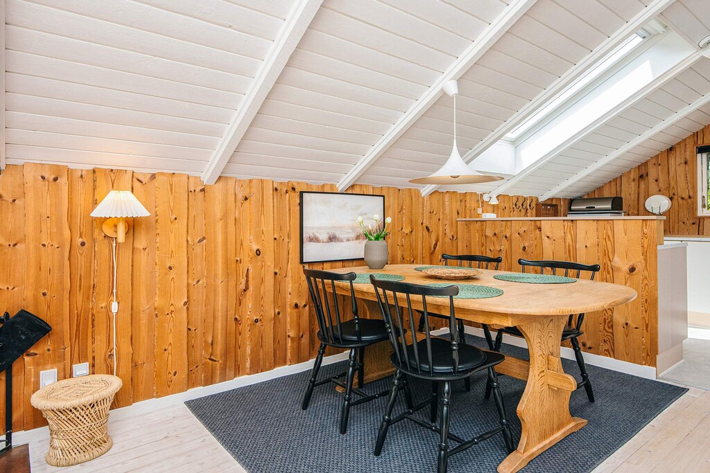 Really cosy wooden holiday home located on a lovely sheltered plot. The plot is perfect for play, fun and relaxation with lots of cosy corners. The holiday home has an open-plan kitchen and living room with a wood-burning stove and heat pump. The living room also opens onto a partially covered terrace. A lovely house in the middle of Houstrup, close to Blåbjerg plantation with many walking and cycling opportunities. Final cleaning included! The house does not allow youth groups, and dogs are not allowed.