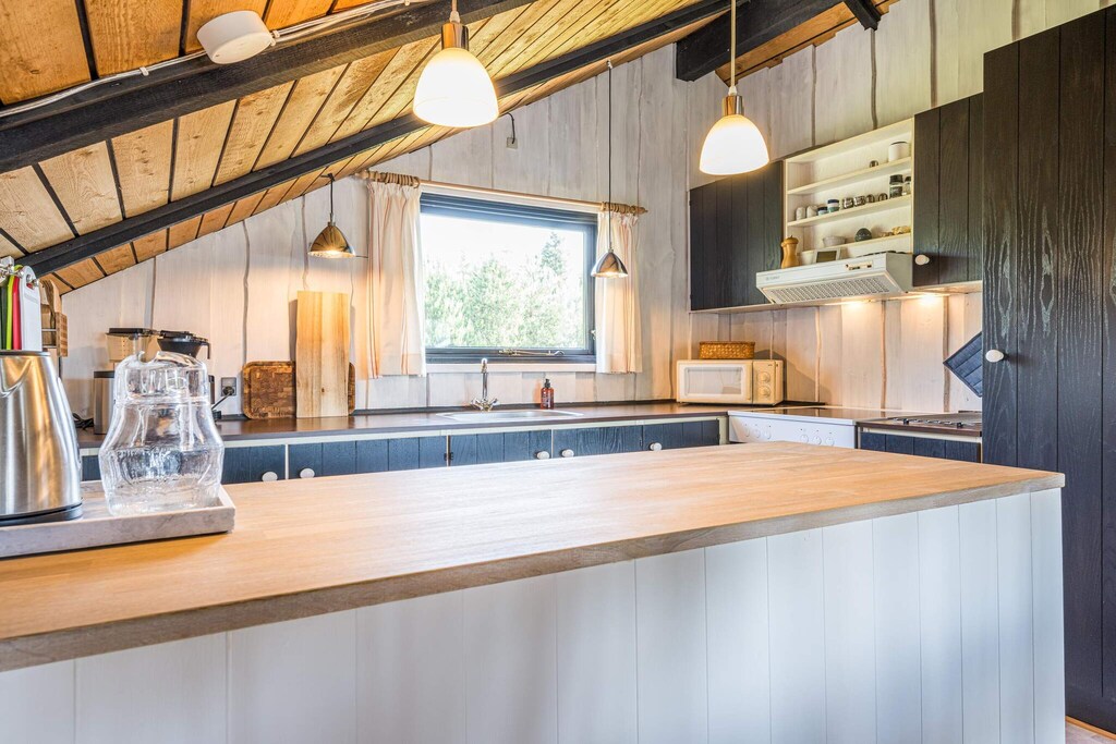 This lovely vacation home is ready for your vacation in scenic and family-friendly Houstrup. Søndervang 78 is a cozy vacation home. This cozy vacation home with two lovely terraces is located in the middle of Houstrup. There are a total of 4 sun loungers and garden furniture. The cottage has an open-plan kitchen and living room. The wood-burning stove is located in the living room, which also has access to a lovely large terrace with beautiful garden furniture, including 2 sun loungers. You can enjoy the morning sun on this terrace. All bedrooms are equally cozy - 2 of the rooms have double beds and 1 room has bunk beds. The cottage is within cycling distance of the beautiful Blåbjerg Plantage, which is surrounded by heather and forest-covered dunes. Houstrup is the perfect choice for those who love the nature of West Jutland. The 4 kilometers to the sea pass through a beautiful natural area and can easily be covered by bike. The cottage is the perfect starting point for family outings to, for example, Bork Viking Harbor, the playground and water park, and Henne Strand. A really cozy cottage, close to nature on the west coast of Denmark. The house is not large, but it has everything you need for a successful vacation on the west coast. In the evening, you can light the wood-burning stove and listen to some good music (which can be streamed) via the house's excellent 300/60 Mbit internet connection and the largest TV package from YouSee. This guarantees that even your teenage children will want to come on vacation. Free final cleaning!