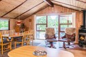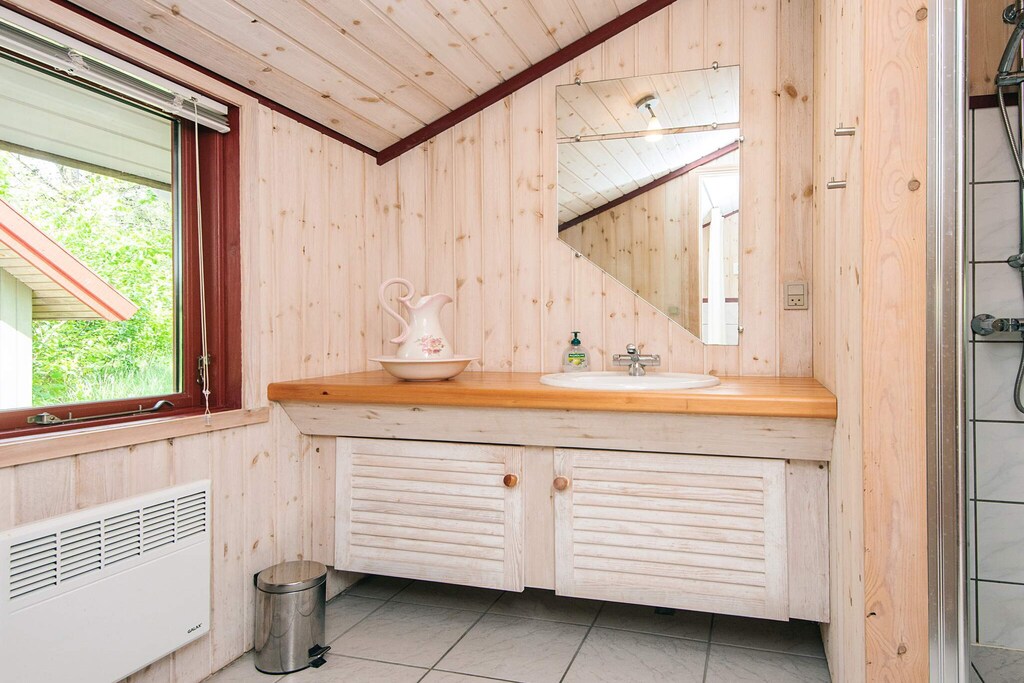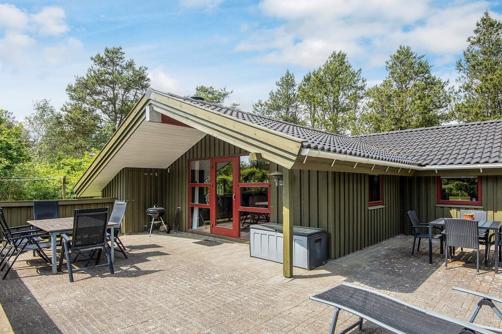 This cozy holiday home is set on a large, beautiful natural plot in the stunning coastal landscape near Houstrup. The living room features a wood-burning stove and is open to the dining area and kitchen, creating a bright and welcoming space for family life. From the living room, you can step out directly onto a large, partially sheltered terrace with lovely views of the property, where children can enjoy the swings or sandbox. The house has three bedrooms: two with double beds and one with two bunk beds, offering four sleeping spaces for children. There are also two bathrooms—one with a sauna and one with a whirlpool—for relaxation after a day outdoors. At the entrance, a large, practical utility room provides a washing machine, dryer, and ample storage for jackets, shoes, and other essentials. The property is set back on a spacious plot, offering privacy and tranquility in the greenery. For added safety, a specially made fence can enclose the terrace, ideal for pets or small children. This fence is stored at the carport and can be easily installed when needed. The end-of-stay cleaning is included in the rental price, allowing you to fully enjoy your holiday without extra concerns. This family-friendly holiday home combines comfort, outdoor fun, and excellent amenities for a memorable stay in the beautiful Houstrup area.