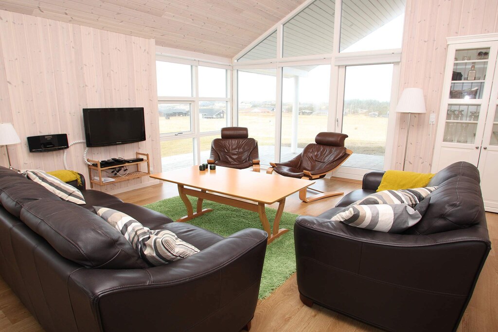 Holiday cottage with activity room located at the old fishing village Nr. Lyngby between Løkken and Lønstrup. From the living room and the terrace there is a small sea view as well as a view of the dune area and Rubjerg Knude lighthouse. The house is very spacious and furnished with kitchen/living room in open concept, activity room with billiards, table tennis, Nintendo Wii and extra TV with DVD player and stereo with CD player. Three bedrooms, mezzanine with TV (not connected to the antenna) and a DVD player. Bathroom with two-person whirlpool with radio and light and access to the sauna. There is underfloor heating throughout. The house is highly insulated and equipped with geothermal heating, which reduces energy costs to an absolute minimum. The decor is light and flavorful with an emphasis on comfort and well-being. The large windows provide the best possible light throughout the day, which, combined with the ohigh-vaulted ceilings, make the rooms attractive and bright. There is approx. 100 m² terrace area to the east, south and west, of which is a small covered evening terrace and a breakfast terrace. The plot is a little high and overlooks the natural area. No letting to youth groups.A refundable deposit might be charged closer to your check-in date. The security deposit ensures a smooth stay and covers any additional services or consumption charges.This deposit covers utilities consumed during your stay and any additional services that may be taken.The final amount will be adjusted based on actual meter readings, actual usage of extra services, and any remaining balance will be refunded within 21 days after checkout.This deposit simply acts as a prepayment for charges that you would anyways pay for, ensuring a seamless stay and check-out experience.