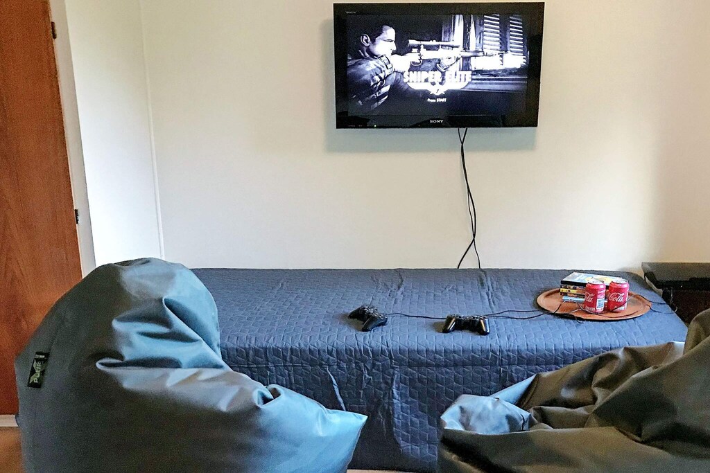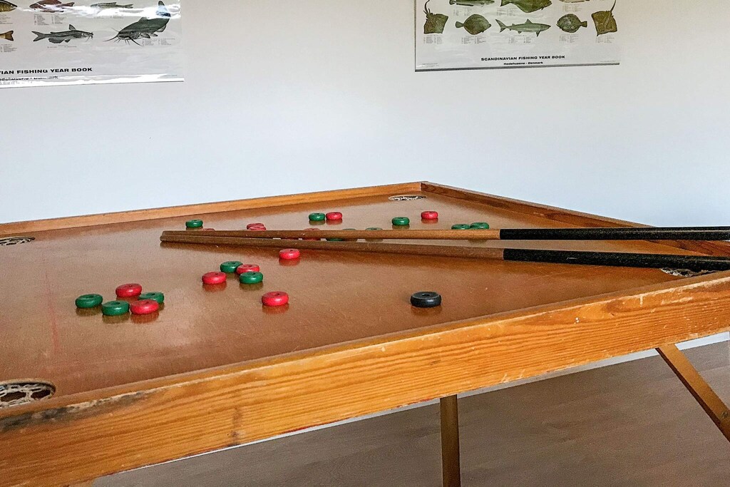 Uns hat es im Haus sehr gut gefallen und wir können es gerne weiter empfehlen! / Die Küche ist super und hochwertig ausgestattet und verdient für sich allein mindestens fünf Sterne, Auch sonst findet man eine Menge praktisches Zubehör im Haus, z,B, Ersatzleuchtmittel und Verlängerungskabel, Es gibt einen riesigen Fernseher mit allerlei Programmen und Apps sowie eine gute Internetverbindung, Auch der gute Bestand an Gartenmöbeln ist eine Erwähnung wert, Leider ist der Billardtisch kein üblicher Tisch zum Spielen von Pool-Billard, sondern ein kleineres Modell mit einfachen Vertiefungen statt Taschen, Die Kugeln waren neu und auch das sonstige Zubehör war ohne Fehler, Der Platz im Aktivitätsraum ist zum Billardspielen etwas knapp,