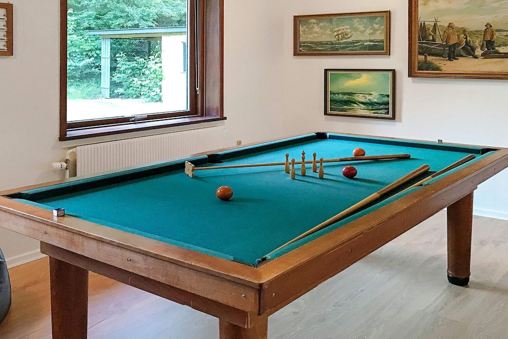 This fishing and activity house is located in scenic surroundings close to one of the best places for fishing for sea trout on Mors. The cottage is furnished with activity rooms with billiards, where you can compete against each other. Modern kitchen with i.a. dishwasher. Bathroom with underfloor heating. There is wireless internet. There is a large natural plot with trees and terrace with good opportunity to find shelter.