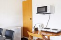 In Klint, right next to the restaurant Det Vilde Køkken, you will find this small apartment with its own terrace, a nice bathroom with shower and a room with some kitchen facilities. There are several German and foreign TV channels including CNN, CNBC, BBC World and Eurosport. There are also DR channels and Tv Øst. The apartment is within walking distance to the beach and Klintebjerg and will be a great base for your excursions in the area. There is a windsurfing board and sail for free use. There is a ladies bike free of charge and there bus stop right outside the house.