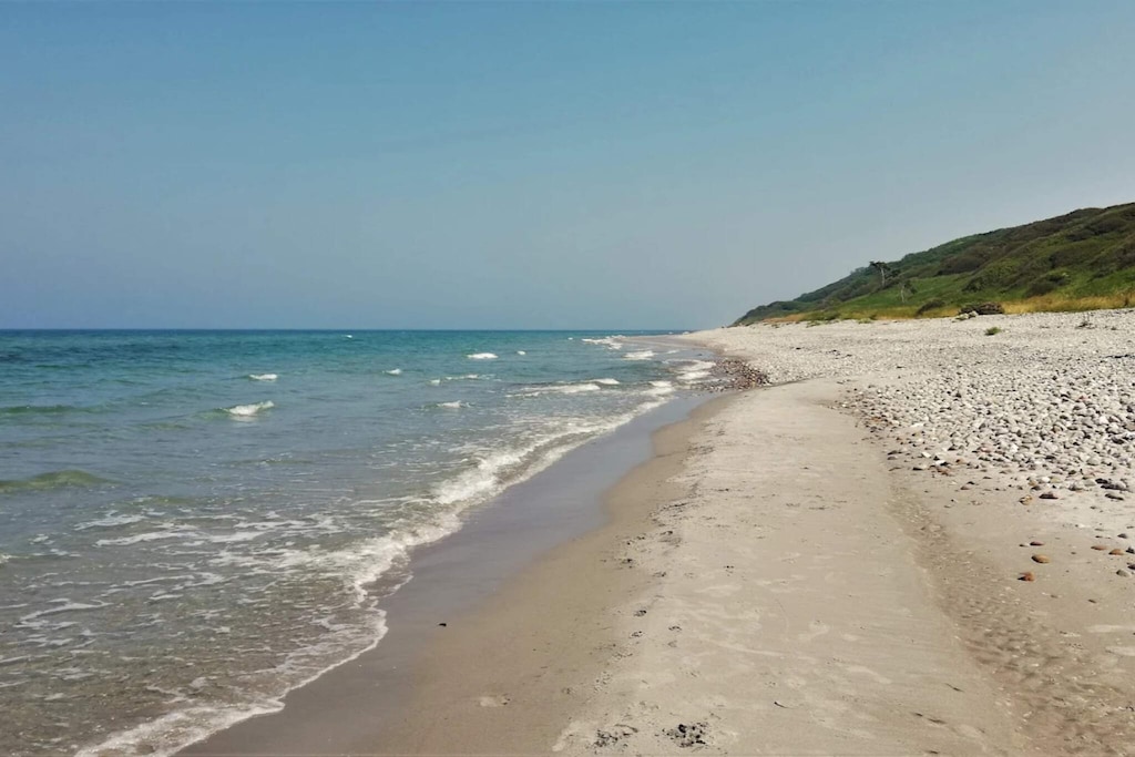 At Ebbeløkke you will find this cottage with whirlpool and sauna close to the water. The cottage has three good bedrooms as well as living room and kitchen in one. There are no TV channels in the house. TV can be connected to own equipment. The house is located on a 3175 m2 large natural plot with plenty of space to enjoy the sun. Not for rent to youth groups.