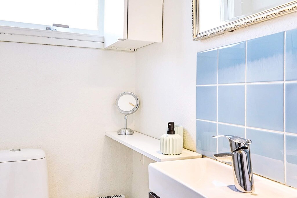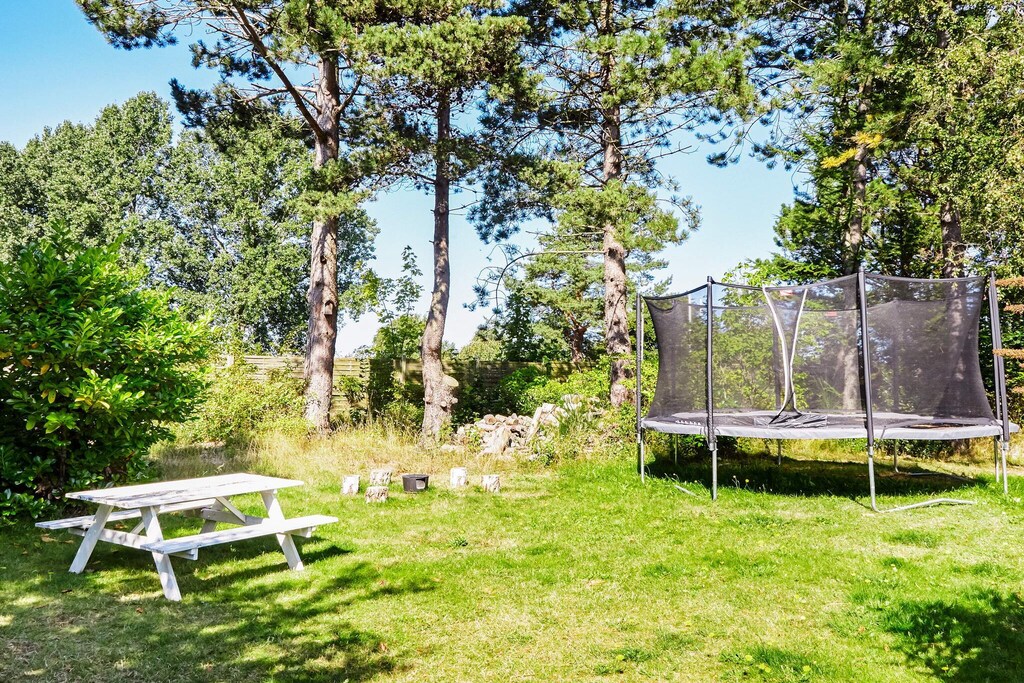 Holiday home located on a large plot in Nyrup. The cottage contains a room with a double bed and a room with a 120 cm wide double bed. At the other end of the house is the master bedroom with double bed and in the living room there is a sofa bed. In the living room there is a TV with Chromecast, where it is possible to watch your own streaming services or DVD movies. Lovely large plot with trampoline (used at your own risk / insurance) and plenty of space for ball games and play. The house has covered and open terraces, so all day meals can be eaten outdoors on the balmy days and evenings. The grocery store is within walking distance of the house where it is possible to buy breakfast bread and ice cream. Not for rent to youth groups.
