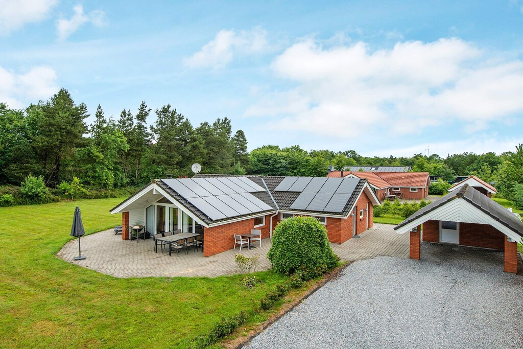 Spend your holiday in comfort and style at this inviting holiday home, where a whirlpool and sauna promise pure relaxation from the moment you arrive. Nestled on a large, open plot, the house invites you to enjoy every hour of the day—from your first coffee at sunrise to the golden glow of sunset. After a bracing walk in the fresh air, retreat indoors to warm up by the crackling wood-burning stove, or let the soothing bubbles of the whirlpool and the gentle heat of the sauna melt away any tension. The bright living spaces are designed for family life, blending cosiness with functionality. Step outside and you’ll find a spacious, partially covered terrace, perfect for lazy afternoons and long evenings. Comfortable garden furniture, sun loungers, a parasol, and a barbecue set the stage for outdoor dining and relaxation. Meanwhile, children will love the large garden, complete with a swing and plenty of room to play and explore. A practical carport ensures your vehicle is well looked after during your stay. Whether you’re looking for quiet moments of peace or quality time together, this holiday home offers the perfect mix of comfort, fun, and natural surroundings for an unforgettable stay. Not available for hire by youth groups.A refundable deposit might be charged closer to your check-in date. The security deposit ensures a smooth stay and covers any additional services or consumption charges.This deposit covers utilities consumed during your stay and any additional services that may be taken.The final amount will be adjusted based on actual meter readings, actual usage of extra services, and any remaining balance will be refunded within 21 days after checkout.This deposit simply acts as a prepayment for charges that you would anyways pay for, ensuring a seamless stay and check-out experience.