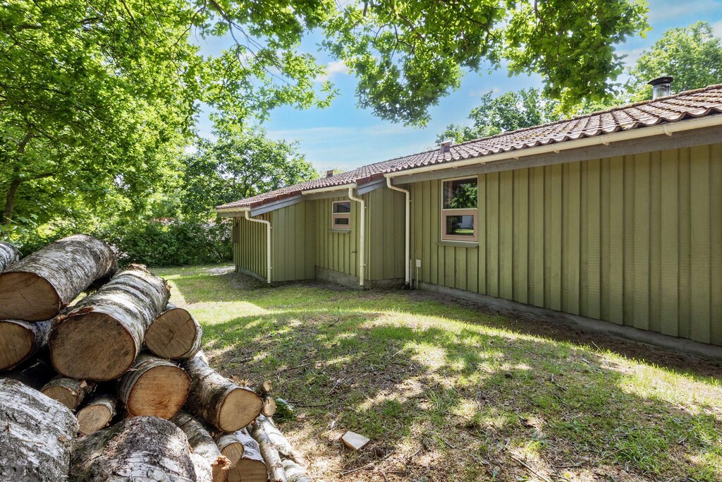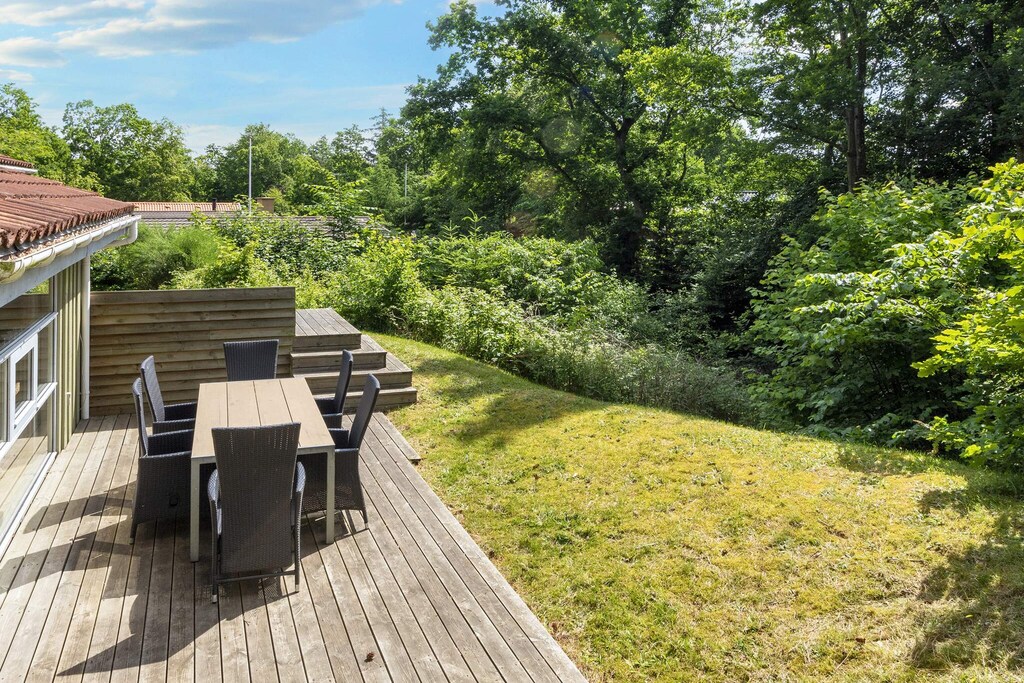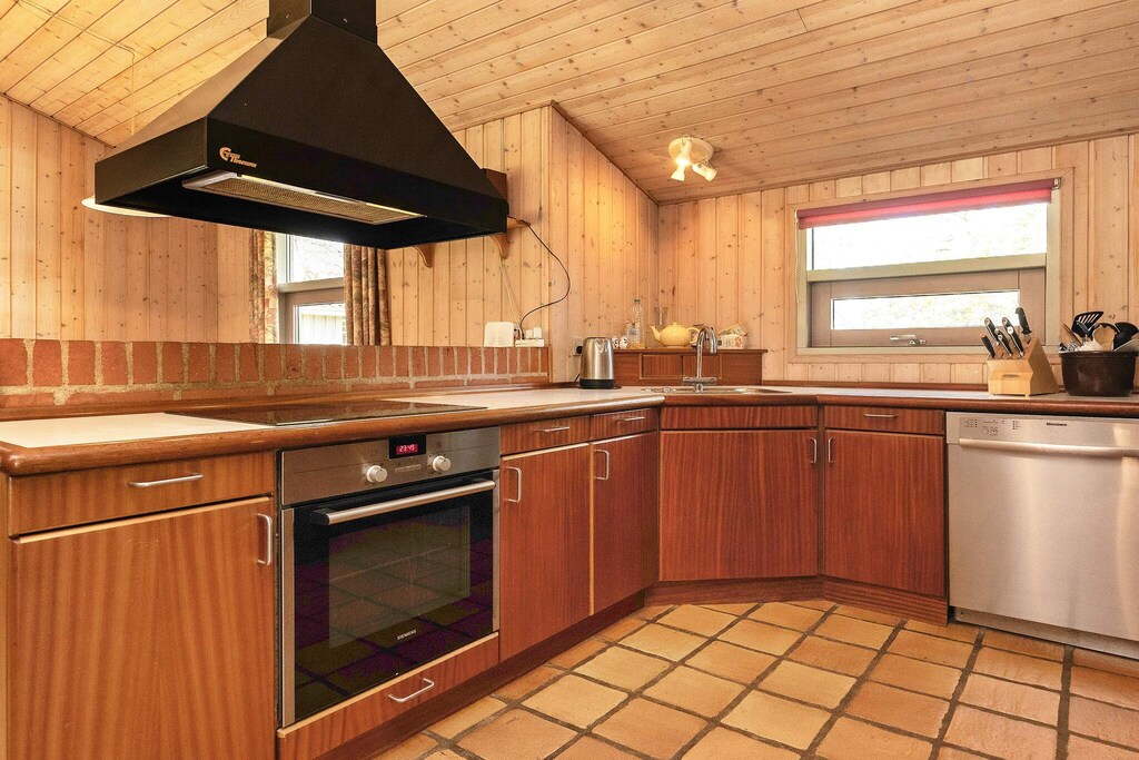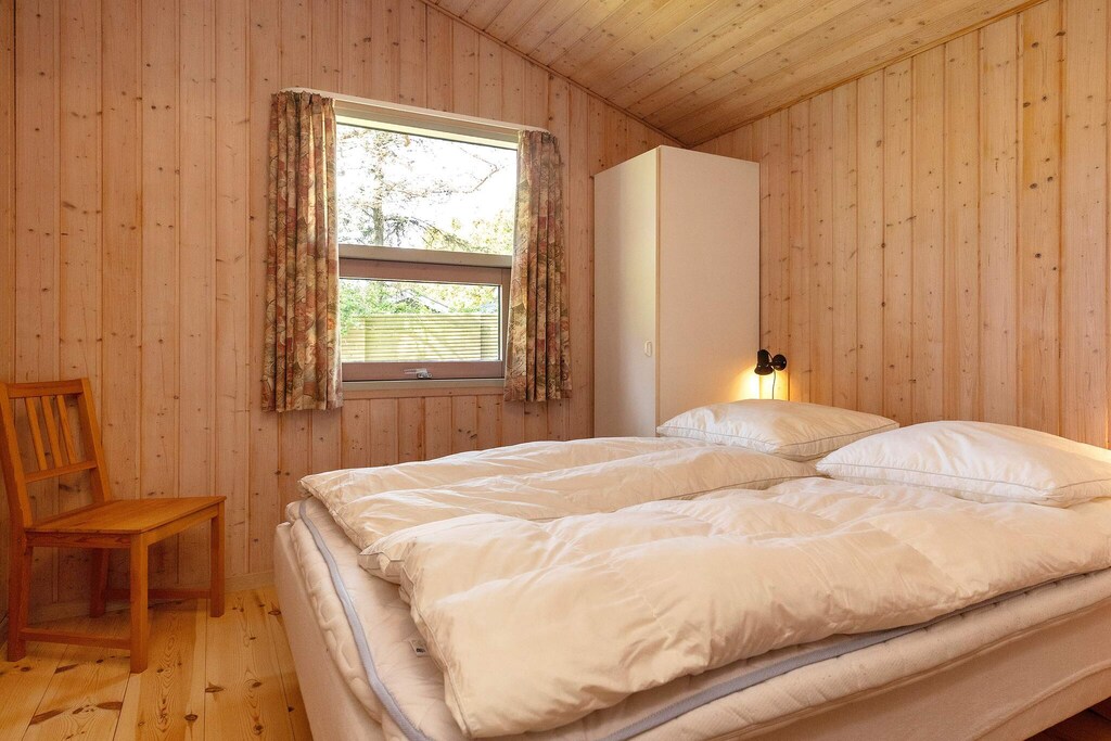 Practically furnished holiday cottage located on a hilly plot. Short distance to the beach. The house invites you to a relaxed and recreational holiday, even outside the summer season, as it is equipped with both 5-person sauna and 2-person whirlpool. A wood-burning stove provides warmth on cool evenings. Open south-facing terrace and a covered terrace to the east. There is access to the terraces from all bedrooms. On the plot swing/sandpit. The house is located in an attractive area in which there are approx. 1.5 km to tennis courts. No letting to youth groups.