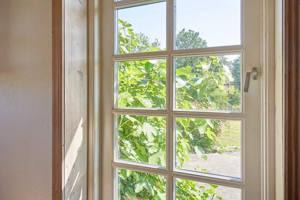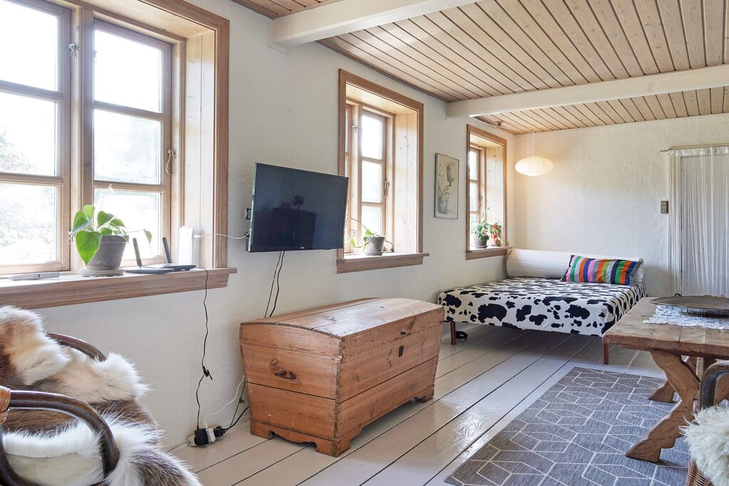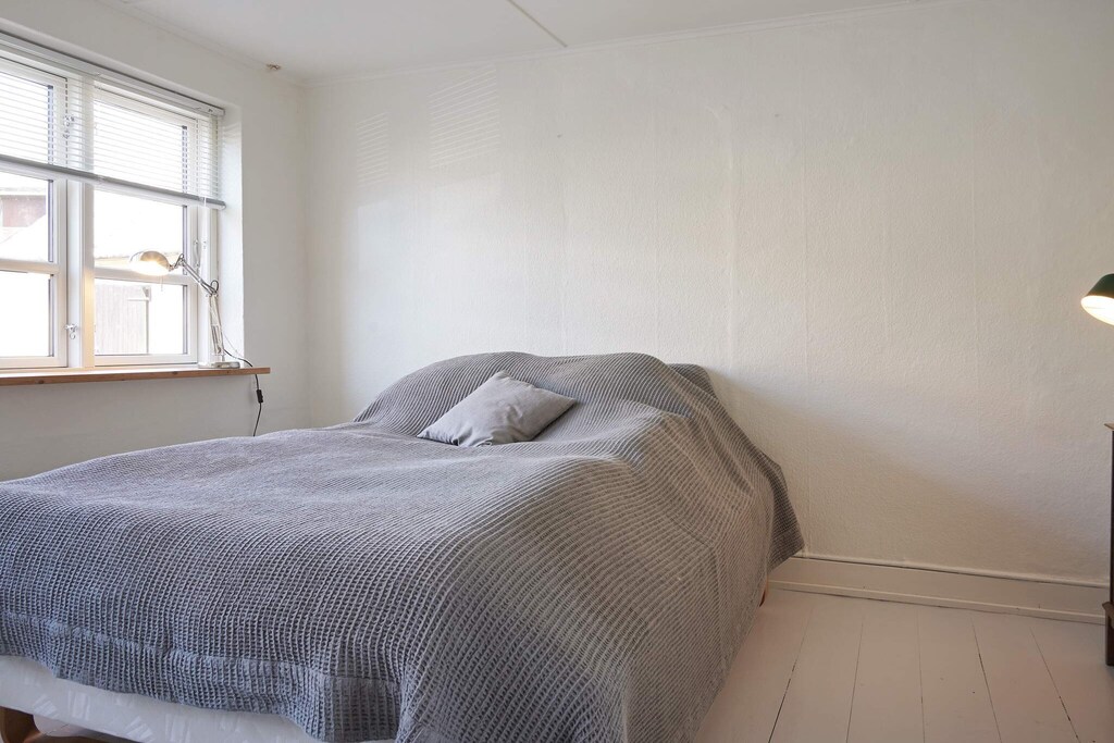 Holiday apartment located in the eastern part of the main building on a country estate in Østermarie. The apartment contains an entrance hall, large kitchen with dining area and exit to the terrace overlooking the garden that goes down to the creek. Owner lives in the other part of the main building. The dining kitchen and living room are separated by beautiful French doors. The living room has a wood burning stove, a cozy sofa arrangement and a double bed. Dining kitchen and living room face south. To the north is the bathroom and bedroom with double bed. The holiday apartment is located in beautiful rural surroundings. Owner's horses walk on the loops around the property. The large garden is the owner's, but can be used by agreement with the owner. Not for rent to youth groups.