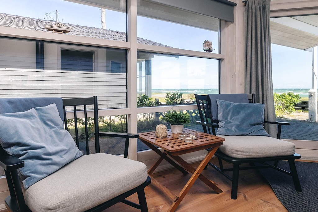 On a beach plot right on the water's edge in the first row approx. 5 m from the water you will find this holiday cottage. From the house you have absolutely incredible water views. Better location is not available. The house has both an open and a covered terrace. There are terraces both towards the sea and a secluded terrace behind the house.A refundable deposit might be charged closer to your check-in date. The security deposit ensures a smooth stay and covers any additional services or consumption charges.This deposit covers utilities consumed during your stay and any additional services that may be taken.The final amount will be adjusted based on actual meter readings, actual usage of extra services, and any remaining balance will be refunded within 21 days after checkout.This deposit simply acts as a prepayment for charges that you would anyways pay for, ensuring a seamless stay and check-out experience.