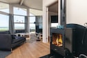 Uitzicht als het niet mistig is, open haard