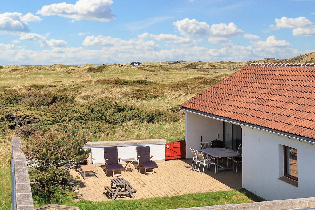 Renovated holiday cottage with tasteful, personal furnishings, large bright rooms and a completely secluded patio located on a large, common dune plot just approx. 600 m from the ocean and beach. The house was renovated in 2015 and has open concept kitchen and living room, 2 bedrooms and a bathroom with underfloor heating. The large windows let in a lot of sunlight and make the living room bright and appealing. There is a wood-burning stove for cosy evenings and costless heating. There is a small, covered terrace as well as a 100 m² large patio. The terrace has sunbeds and a grill. The common plot borders the beach. The area has a common playground with ball field, swings, sandpit and slide. No letting to youth groups.A refundable deposit might be charged closer to your check-in date. The security deposit ensures a smooth stay and covers any additional services or consumption charges.This deposit covers utilities consumed during your stay and any additional services that may be taken.The final amount will be adjusted based on actual meter readings, actual usage of extra services, and any remaining balance will be refunded within 21 days after checkout.This deposit simply acts as a prepayment for charges that you would anyways pay for, ensuring a seamless stay and check-out experience.