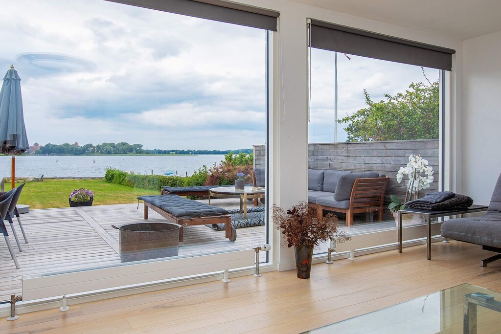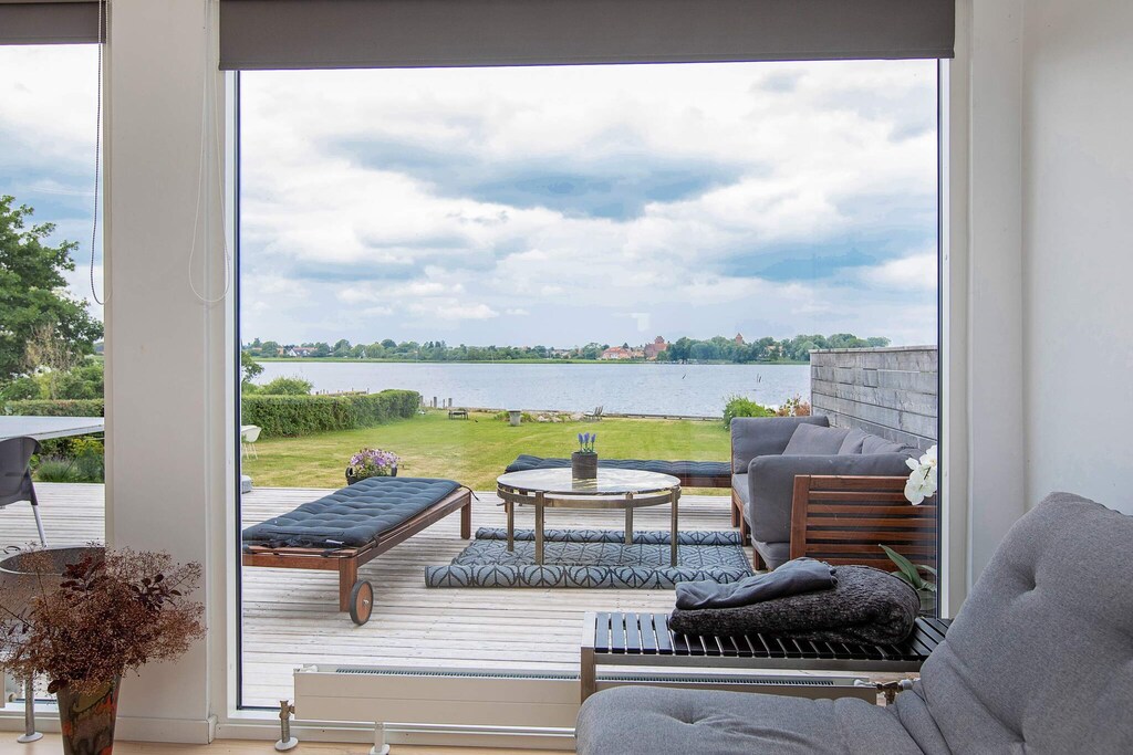 With an absolutely fantastic location in the 1st row to the water in Præstø is this cottage, where you can jump directly into the water at the end of the garden. The ground floor consists of a large entrance / entrance area with a spiral staircase, which leads up to the 1st floor. From the entrance hall there is access to a large bedroom on one side of the house and on the other side you enter the large bathroom with underfloor heating. There is a nice large, open kitchen and a large living / dining room with panoramic views to the garden and the water. In the living room there is the possibility of an extra bed for two people on a sofa bed. From the living room there is direct access to the huge wooden terrace, where you can enjoy the magnificent view, turn on the grill and enjoy life. On the 1st floor there are two large double bedrooms and a landing. From the rooms there is also direct access to an absolutely fantastic roof terrace, where you can also enjoy the view and not least the sun. As an almost neighbor is the very cozy and lively marina, where various restaurants and cafes can be enjoyed. Not for rent to youth groups.