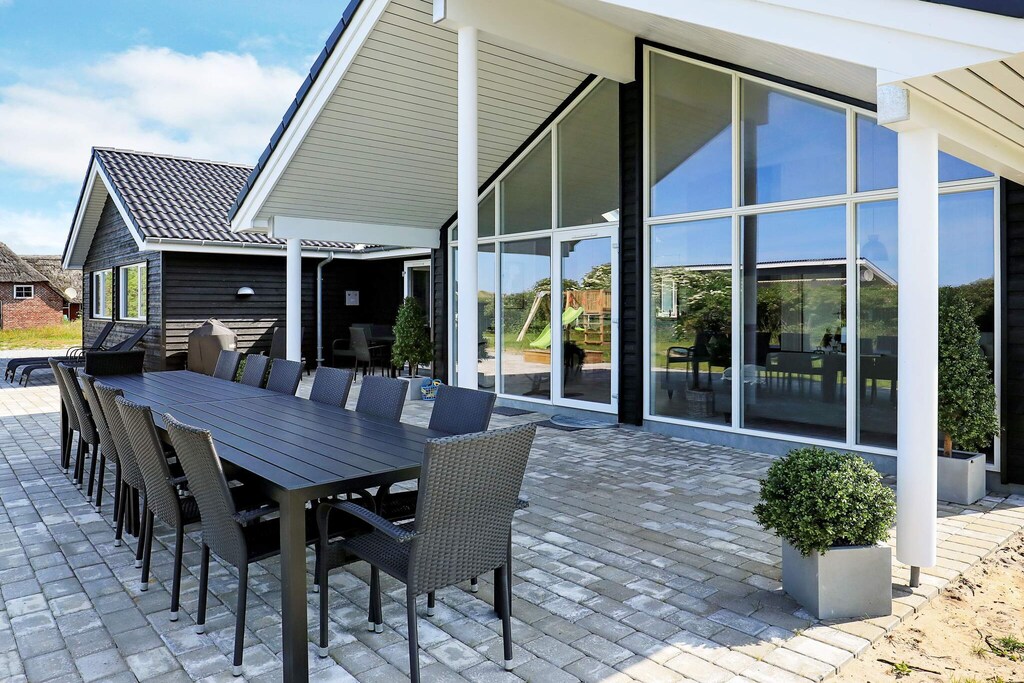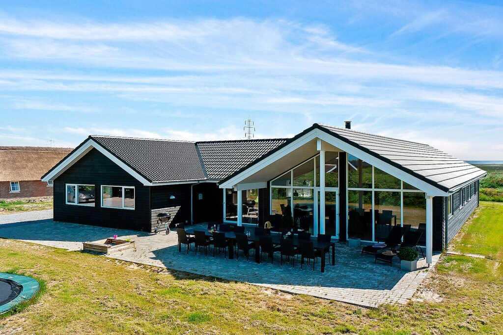 Holiday home with swimming pool, whirlpool and sauna located approx. 800 m from the water. The house's pool section contains a large swimming pool, water slide, swimming coach, large whirlpool and sauna with room for 4-6 people. The swimming pool is 18 m & # 178; and with slide for the kids. There is also a swimming coach, so all week you can improve your condition with daily swimming combined with pure relaxation in the whirlpool and sauna, which is located in the pool room. In the activity room, billiards, electronic darts and table tennis can be played. There are several TVs in different departments as well as PlayStation4 and blu-ray DVD player. Personally decorated with modern furnishings. In the well-thought-out kitchen, there is a large refrigerator, separate freezer and 2 dishwashers, so cooking and the subsequent cleaning goes like a breeze. The dining / living room is tastefully decorated with stereo with CD player, flat screen TV, DVD player, high chair, sofa area and wood burning stove. The crackling fire from the stove can be enjoyed indoors for company. The house's 7 bedrooms have good box spring mattresses, and in addition there is a large and spacious sleeping loft. The house is extremely spacious and well-dimensioned and built around two separate sleeping areas. Each department has a bathroom and there is an additional bathroom associated with the pool department. A total of three bathrooms, all of which of course have underfloor heating. The house is also heated with a heat pump, which is extremely energy-friendly. In the garden, the children can enjoy themselves with a swing and sandpit as well as a large trampoline (used at their own risk / insurance). On the large terrace you can enjoy the sun and have cozy barbecue evenings. Due to the size of the house, the price of cleaning this cottage differs from the normal list price. Settlement of consumption, cleaning and deposit is paid in cash on site to the caretaker. For rent to non-youth groups. The pictures are model photos of the upcoming house.