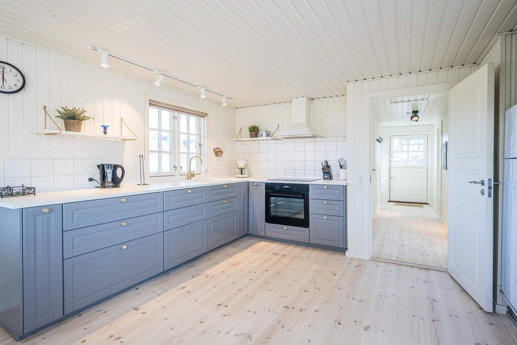 Just up from the last dune row on a magnificent plot in Søndervig before the North Sea is a real gem of a summer house. Everywhere the cottage appears bright and friendly with i.a. light wood floors and white wood paneling in all rooms. The kitchen, which is also white, is in open connection with the living room, which has an original built-in fireplace as well as an exit and a view of the most beautiful sand dunes. Furthermore, there is access to a beautiful sheltered wooden terrace, where you can hear the North Sea roar at all times of the year. Lovely cottage in Søndervig close to the beach - beautiful cottage in Denmark on the West Coast! Free final cleaning!