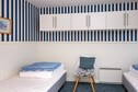 Just 150 meters from the North Sea, you will find this centrally located and tastefully decorated 80 m2 vacation apartment on the first floor in Søndervig, which was newly renovated in 2022. The details in the apartment have been carefully considered and the colors are beautifully coordinated, creating a wonderful sense of calm in which to immerse yourself in the beautiful landscape outside. The light is fantastic. There is an air-to-air heat pump to save energy. The kitchen is well equipped with a dishwasher and induction hobs, among other things. There is plenty of space around the dining table in the kitchen/living room. Separate living room with flat screen TV with Danish, German, Norwegian, and Swedish channels. From the living room, there are windows and patio doors leading out to a large, covered south-facing balcony, so you can also move outside and enjoy the fresh air, the beautiful landscape, and listen to the North Sea. Here you are undisturbed and have a view of large rosehip bushes that shield you from the wind. The balcony has a café set, lounge furniture, and a gas grill, where you can enjoy your vacation days outdoors to the sound of the North Sea. The apartment has a bedroom with two single beds and a loft with a double bed where you can stand upright. In the living room, there is a sofa bed that is best suited for children. In addition, there is a small bathroom and an entrance hall. The apartment is part of the Danland holiday center, and you have free access to the water park, a large activity room with table tennis, billiards, and PlayStation, a laundromat, and an outdoor playground. Just a few minutes' walk takes you to the center of Søndervig, and the fantastic beach is only about 150 meters from the apartment. Not available for rental to youth groups.A refundable deposit might be charged closer to your check-in date. The security deposit ensures a smooth stay and covers any additional services or consumption charges.This deposit covers utilities consumed during your stay and any additional services that may be taken.The final amount will be adjusted based on actual meter readings, actual usage of extra services, and any remaining balance will be refunded within 21 days after checkout.This deposit simply acts as a prepayment for charges that you would anyways pay for, ensuring a seamless stay and check-out experience.