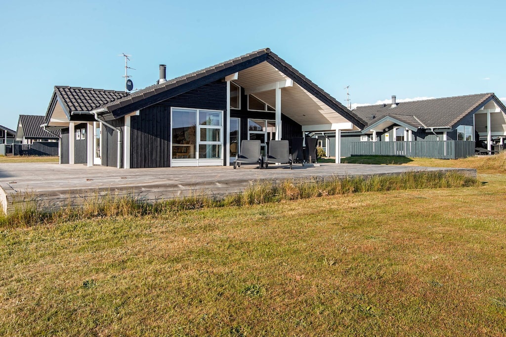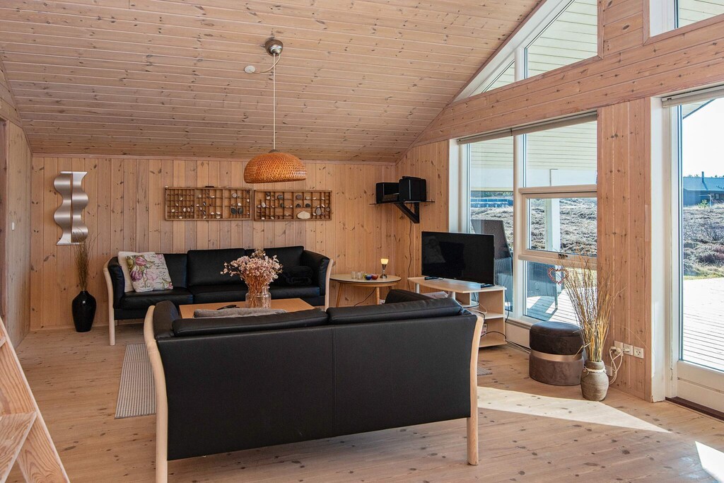 This holiday home is set in a picturesque area, perfect for those who enjoy hiking and exploring nature. After a day spent outdoors, by the sea, or at the nearby golf course, you can relax in the private sauna or the small whirlpool, providing a perfect retreat for rest and rejuvenation. The well-appointed home features an open-plan kitchen connected to the living area, which includes a cozy wood-burning stove and access to a loft (hems). From the living room, you can step directly onto a large, sunny terrace, ideal for enjoying meals outside, relaxing in the sun, or simply taking in the natural surroundings. The property is surrounded by beautiful landscapes and offers opportunities for wildlife observation and nature walks. A fishing lake is just 200 meters from the house, perfect for a quiet morning or afternoon outdoors. Golf enthusiasts will appreciate that the local golf course with a restaurant is only 1.6 km away. Guests also have free access to the nearby Danlands Badeland, featuring water slides, waterfalls, a sauna, whirlpool, and a Turkish bath, making it a fun option for both children and adults. For larger groups or multiple families, the neighboring houses (No. 32869 and 29006) are recommended.A refundable deposit might be charged closer to your check-in date. The security deposit ensures a smooth stay and covers any additional services or consumption charges.This deposit covers utilities consumed during your stay and any additional services that may be taken.The final amount will be adjusted based on actual meter readings, actual usage of extra services, and any remaining balance will be refunded within 21 days after checkout.This deposit simply acts as a prepayment for charges that you would anyways pay for, ensuring a seamless stay and check-out experience.