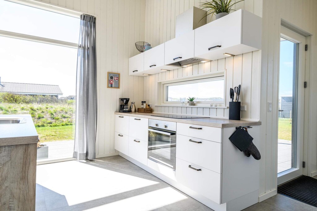 MAX 1 DOG - Close to the beach in Søndervig, is this beautiful cottage from 2019. This lovely cottage is bright and modern in decor. All the furniture fits well together, the rooms are bright and with lots of air. The kitchen and living room are in open connection with each other and with a large window section. From here there is access to a lovely terrace and a lovely garden, where there are good opportunities for play and ball games. All bedrooms are also bright and spaciously furnished and with good beds. A super nice and cozy cottage, close to the beach and holiday idyll.