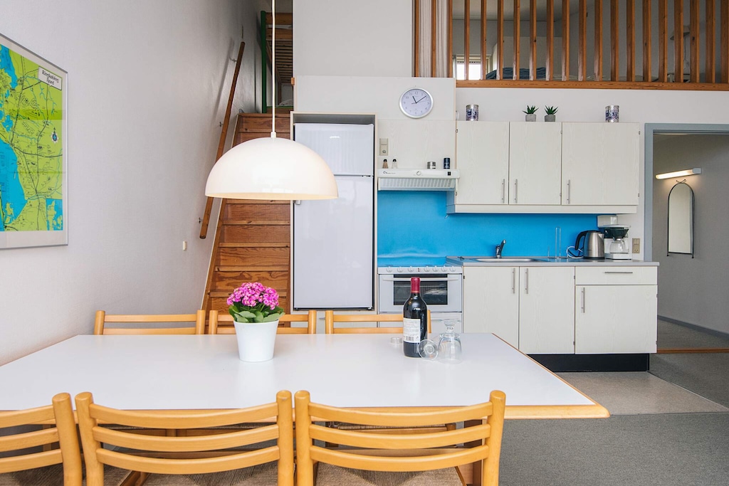 This inviting holiday apartment is perfectly located in the center of Søndervig, a lively seaside resort where couples and small families can enjoy a relaxing stay close to the beach and plenty of attractions. With the North Sea just about 100 m away, you can start each day with a refreshing walk along the coast. The apartment is situated on the 1st floor and offers flexible sleeping arrangements. There is one bedroom with two single beds that can be joined into a double, and a loft under the roof slope with a double bed and a bunk bed, ideal for children. The living room is furnished with a sofa bed and two extra beds, making it easy to accommodate different needs. The open-plan kitchen and living area creates a cozy space for shared meals and relaxing evenings. From here, you have direct access to a covered terrace where you can enjoy the fresh sea breeze and the atmosphere of the coastal town. Guests benefit from a wide range of on-site facilities. There is a large playground for children and a communal barbecue area with campfire, perfect for family gatherings. The stay also includes free access to the Danland Water Park, which features water cannons, waterfalls, sauna, whirlpool, and Turkish bath. Activity rooms with billiards, table tennis, darts, and arcade games offer entertainment for all ages. Right across the street, Beach Bowl provides even more options with bowling, fitness, and tennis available for a fee. For added convenience, a Type 2 electric car charging station is available on the property. Please note: rental is not available for youth groups.A refundable deposit might be charged closer to your check-in date. The security deposit ensures a smooth stay and covers any additional services or consumption charges.This deposit covers utilities consumed during your stay and any additional services that may be taken.The final amount will be adjusted based on actual meter readings, actual usage of extra services, and any remaining balance will be refunded within 21 days after checkout.This deposit simply acts as a prepayment for charges that you would anyways pay for, ensuring a seamless stay and check-out experience.