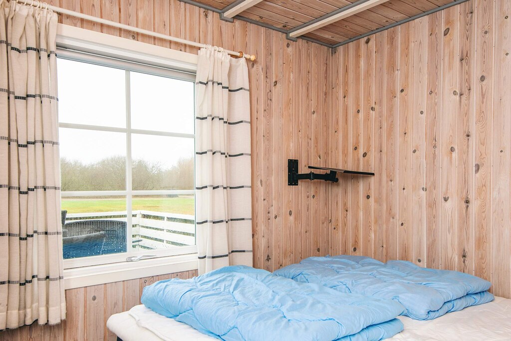 On a lovely natural plot on the northern part of Rømø is this cottage with swimming pool, whirlpool and sauna equipped with all modern facilities for a wonderful holiday all year round. The pool room offers a 21 m2 swimming pool, a large 6-person whirlpool, where you can enjoy a wonderful underwater massage and a charitable sauna with room for at least 5 people. In open connection with the bright and well-equipped kitchen is the large living / dining room where you can enjoy yourself by the wood stove and play board games, read or watch a good movie. Walls and ceilings are covered with light, lye-treated wood and on the floors in the living room, kitchen and bathrooms there are tiled floors with underfloor heating. The house has an energy-saving heat pump and is heated with environmentally friendly solar energy. In addition to five double bedrooms, there are two bathrooms and a guest toilet. Outdoors there is a 50 m & # 178; large terrace where you can grill or just relax and sunbathe. Here we are also thinking of the children with swings and a slide as well as a buried trampoline (used at your own risk / insurance). Free access to water park and free Sports and Fitness.