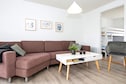 Klare, geschmackvolle Einrichtung, sehr gut ausgestattete Küche,