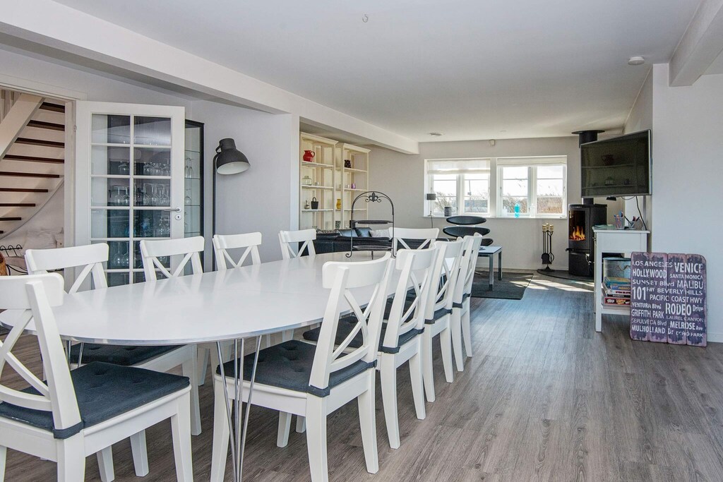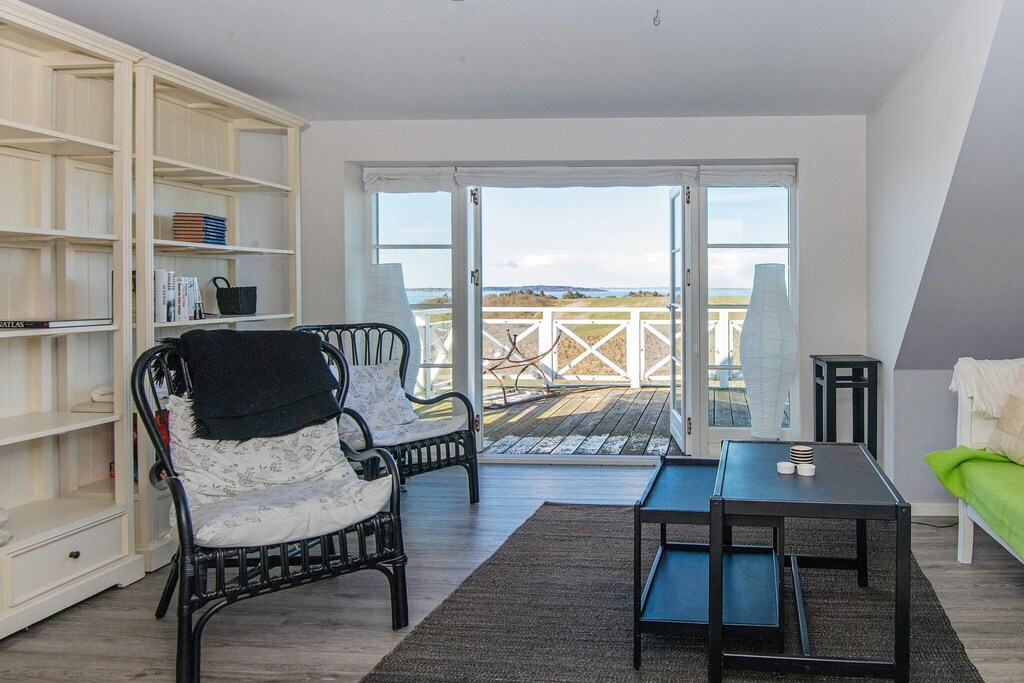 High-quality two-story cottage with attention to detail and panoramic views of the countryside and fantastic fjord views both indoors and outdoors. The house is located only about 500 meters from the fjord, but there is no direct access to the beach from the property. The house is a low-energy house, i.e., well insulated and with a central heating system. In front of the house there is approx. 4000 km2 of land, where there is access to a table and bench set (approx. 400 meters from the house) with a panoramic view of the Limfjord. It is also possible to see both deer and hares etc. in front of the house. The entire house is bright and inviting and is made of the best materials. Ground floor: Open kitchen with adjoining dining room and living room with a sleeping area. The living room offers cozy furniture, free internet, flat-screen TV with both Danish and international channels, including TV2 and ZDF. There is a wood-burning stove. The kitchen is high quality and well equipped with ceramic hobs, American refrigerator, American freezer with 200 liters of freezer space, tap with 100-degree water Cooker, separate oven with grill, extractor hood, microwave, and coffee maker. Bathroom with shower. There is a central vacuum cleaner in the house. In the house to the right, there is a dryer and washing machine, gas grill, and fish cleaning area. The building to the left of the main entrance is a private house. On the ground floor, there is also a large wooden terrace in front of the living room and kitchen. First floor: 3 bedrooms, one with a double bed and a single bed, one with a double bed, a walk-through room with a double bed, and a small single room with a single bed. On the first floor, there is a living room/lounge with direct access to a large balcony with panoramic views of the countryside and fantastic views of the fjord. Bathroom with shower, bathtub, and 2-person spa. A house suitable for all seasons, which must be experienced. Not available for rent to youth groups or tradespeople.A refundable deposit might be charged closer to your check-in date. The security deposit ensures a smooth stay and covers any additional services or consumption charges.This deposit covers utilities consumed during your stay and any additional services that may be taken.The final amount will be adjusted based on actual meter readings, actual usage of extra services, and any remaining balance will be refunded within 21 days after checkout.This deposit simply acts as a prepayment for charges that you would anyways pay for, ensuring a seamless stay and check-out experience.