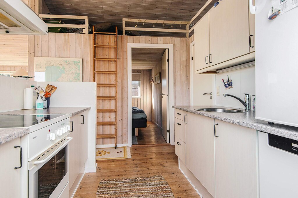 Huset er godt indrettet, De relativt få kvm er godt udnyttet, Rigtig fin træterrasse omkring huset, Kort afstand til badestrand,