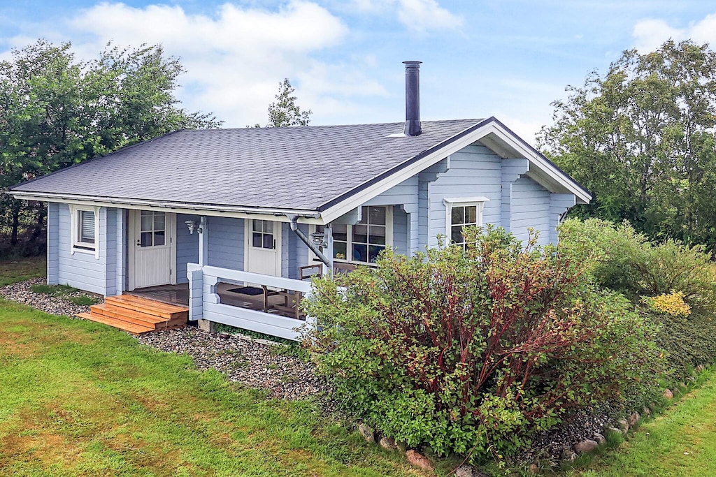 Log house situated high on a 1000 m² corner plot with a beautiful view of fields and recreational areas. The house appears very well maintained with light wooden floors and a pitched ceiling. There is a flat-screen TV with unlimited fast fiber internet access with fixed Danish, Nordic and German TV channels and streaming TV Kitchen/dining room, room with double bed, room with 2 bunks and separate entrance, a loft with 1 double bed and a bathroom with tiled floor and shower. From the living room there is direct access to a covered and unobstructed terrace. There is approx. 200 m to a good and child-friendly beach, where there are also 3 shelters, a large covered barbecue area and a playground for the children..A refundable deposit might be charged closer to your check-in date. The security deposit ensures a smooth stay and covers any additional services or consumption charges.This deposit covers utilities consumed during your stay and any additional services that may be taken.The final amount will be adjusted based on actual meter readings, actual usage of extra services, and any remaining balance will be refunded within 21 days after checkout.This deposit simply acts as a prepayment for charges that you would anyways pay for, ensuring a seamless stay and check-out experience.