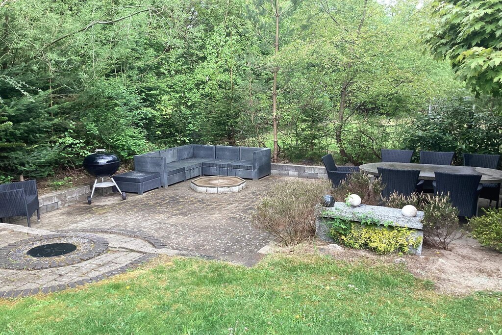 Renovated, beautiful summer house located in a quiet natural area by Mossø, at the end of a closed road. The house is situated on a large plot with a wilderness bath and several cozy nooks where children can hide and play in the garden, swing, or jump on the trampoline (used at your own risk/insurance). The wilderness bath is heated with firewood, which can be purchased at the house. The kitchen is open to the main living room, so everyone can enjoy themselves and play games or retreat to the smaller living room, which has a wood-burning stove. The house has five bedrooms with double beds, one of which also has a bunk bed. The house has two bathrooms, one with a toilet and shower (without a spa bath) and the other with a toilet.There are two living rooms, one of which has a TV and Bluetooth speaker. Both living rooms have wood-burning stoves, high chairs, and children's games. This unique house on the edge of the forest has seven garden doors, creating a seamless connection between indoor and outdoor living. In addition to games and play activities in the garden, there is a fire pit and an activity house with a table tennis table, darts, and various play equipment. The Gudenåen river runs alongside the small cottage area and can be reached 400 meters away, where there is a private green area, a boat dock, and swimming opportunities, as well as the option to privately rent the house's boat. In the area around the house, there are trails for hiking, forests for mountain biking, and good roads for road cycling. Not available for rental to youth groups or tradespeople.A refundable deposit might be charged closer to your check-in date. The security deposit ensures a smooth stay and covers any additional services or consumption charges.This deposit covers utilities consumed during your stay and any additional services that may be taken.The final amount will be adjusted based on actual meter readings, actual usage of extra services, and any remaining balance will be refunded within 21 days after checkout.This deposit simply acts as a prepayment for charges that you would anyways pay for, ensuring a seamless stay and check-out experience.