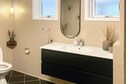 Det er et stort hus med plads til 10, ligger på en dejlig grund med store træer, Der er kun et badeværelse som kunne bruge en opdatering, specielt brusenichen, Et badeværelse er for lidt når der er 8 mennesker som skal i bad, Vi savnede skabe på værelser og spejle,