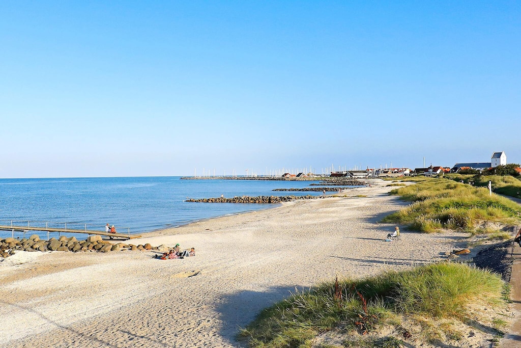 Bright, welcoming, and full of charm—this holiday home near Sæby is a perfect escape for families or friends seeking sea views and a relaxed coastal vibe. Just a short stroll from the child-friendly beach, nature trails, and the town centre, it offers a wonderful blend of seaside tranquillity and easy access to local life. At the heart of the house is the open-plan kitchen and living area, designed for togetherness. Large windows fill the space with light and frame glimpses of the water, while the dining and sitting areas invite long meals, board games, or cosy evenings by the wood-burning stove. A climate-friendly heat pump ensures comfort in every season. Step outside, and the terrace wraps around the house, offering both sunny spots and sheltered corners—perfect for barbecues, morning coffee, or quiet afternoons with a book. The main house provides three bedrooms with four beds, including two singles (80 x 185 cm) well-suited for children. A spacious annex offers a double bed, giving older kids, grandparents, or friends their own private retreat. The modern bathroom, complete with underfloor heating, shower, and washing machine, adds extra convenience. From here, you can wander along the seaside promenade to Sæby’s harbour and discover the heart of this charming town. Whether you come for beach days, harbour walks, or simply the sea view from your terrace, this holiday home makes every stay memorable. Please note: rentals are not permitted to youth groups.A refundable deposit might be charged closer to your check-in date. The security deposit ensures a smooth stay and covers any additional services or consumption charges.This deposit covers utilities consumed during your stay and any additional services that may be taken.The final amount will be adjusted based on actual meter readings, actual usage of extra services, and any remaining balance will be refunded within 21 days after checkout.This deposit simply acts as a prepayment for charges that you would anyways pay for, ensuring a seamless stay and check-out experience.