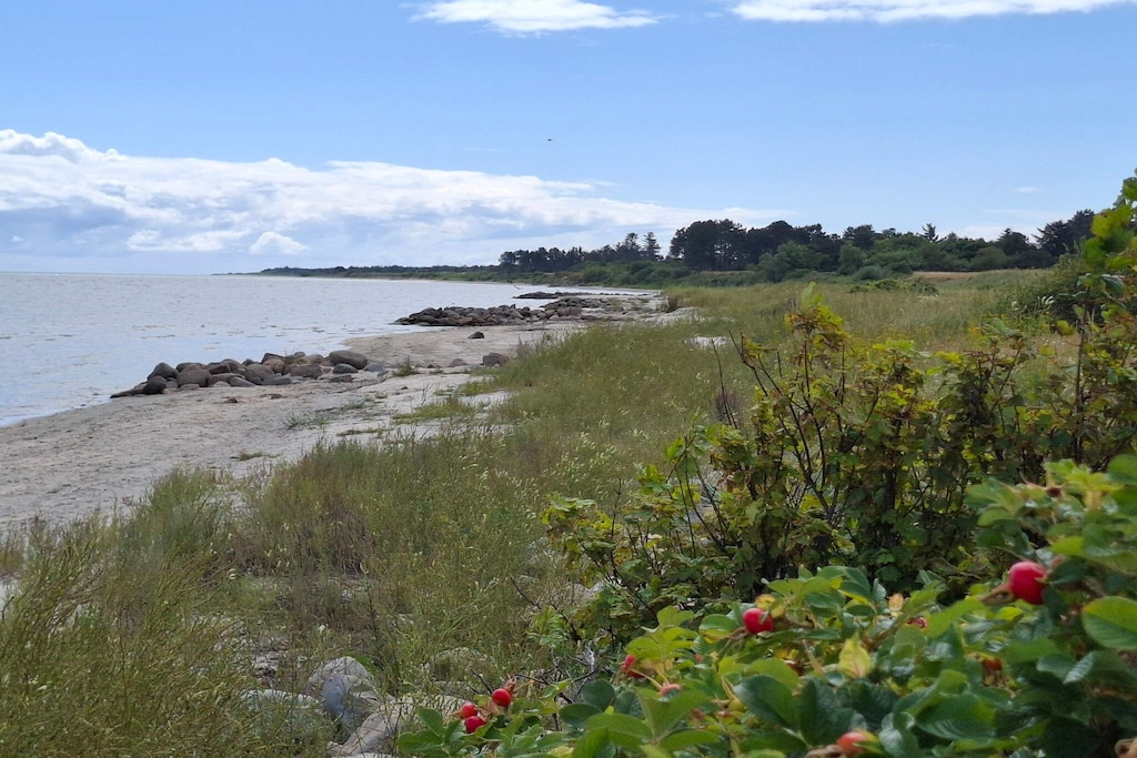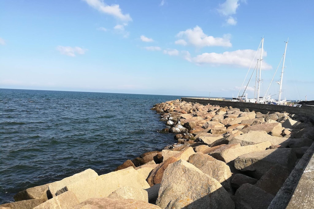 Holiday home with whirlpool and sauna located in Sæby with a beautiful view of the Kattegat. The house is located high on a hilly plot that gives a really good view of the sea over the other summer cottages. Since the house is so high up, the terrace is relatively secluded. There are stairs up the slope to the house from the parking lot. The plot is hilly, but there are 40 m & # 178; beautiful open terrace area facing the sea on the east side and 10 m & # 178; covered terrace on the south side of the house. The cottage has a large bathroom with whirlpool and sauna as well as a guest toilet. Three fine bedrooms, including two double rooms and a room with two sets of bunk beds. In the kitchen you can stand and enjoy the view of the sea while you cook. There is tiled floor with underfloor heating in the kitchen / living room, which is in open connection to the bright living room. In the living room there is a wood stove and from the sofa corner there is also a view of the sea approx. 200 m from the sea. Not for rent to youth groups.